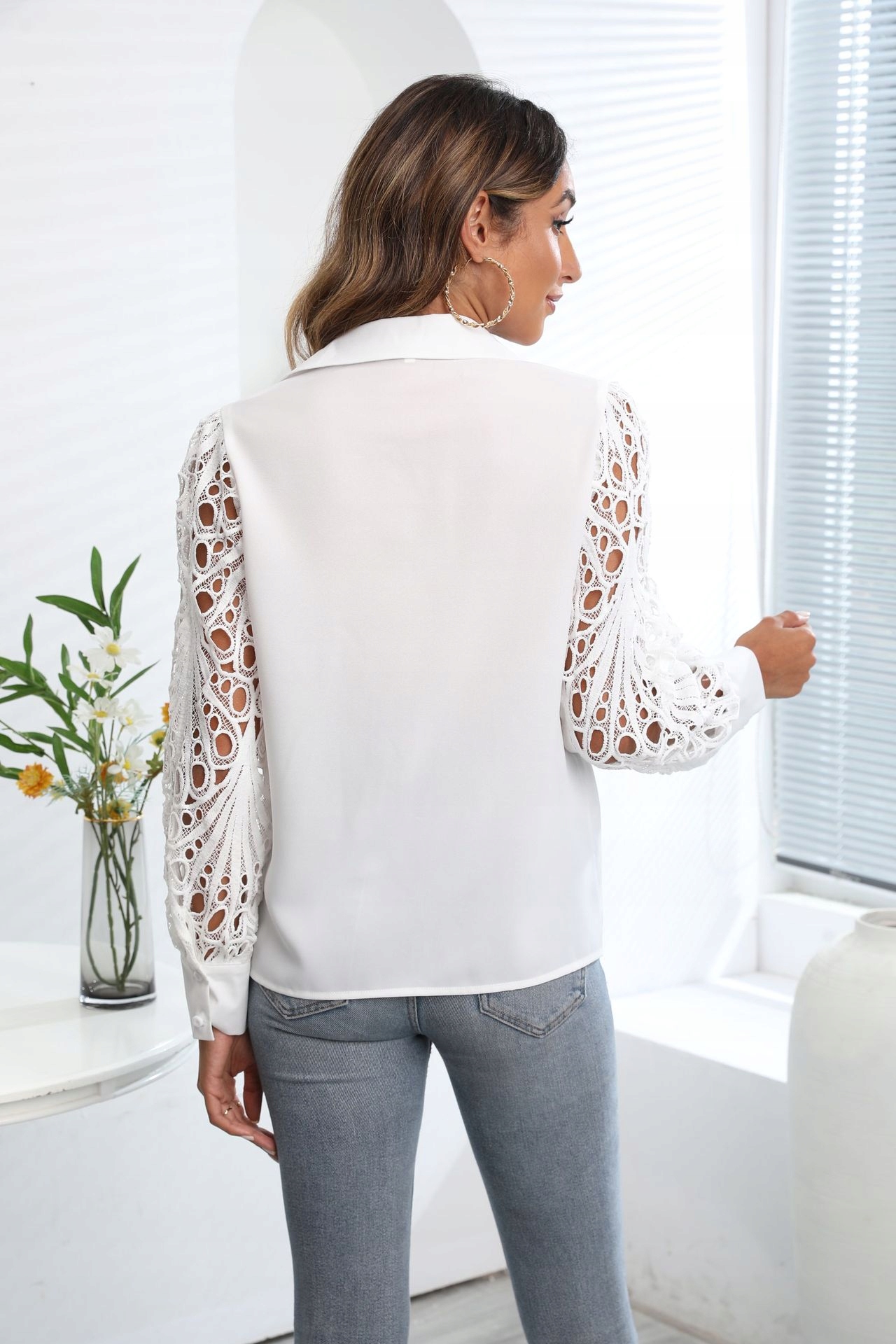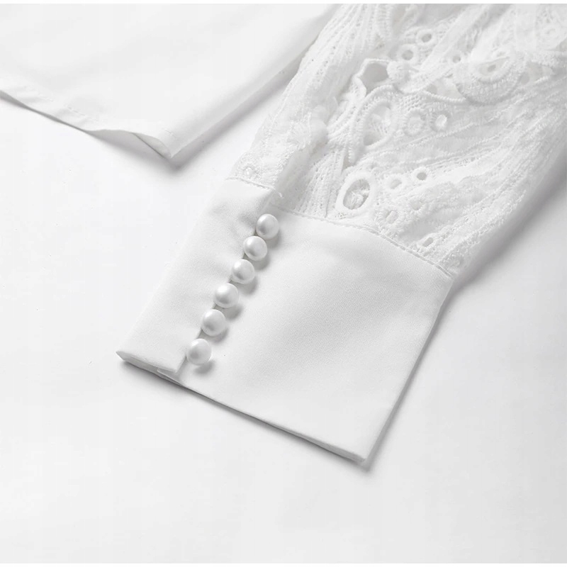 Bluzka damska elegancka z ozdobnymi długimi rękawami biała koszula (#174NewStyleD)
