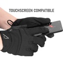 Taktyczne rękawice outdoorowe w kolorze czarnym, które doskonale sprawdzą się w przypadku obsługiwania broni, paintballa czy airsoftu. Posiadają specjalne wykończenie na palcach, które pozwalają na obsługę smartfona. Oprócz tego rękawice posiadają specjalne otwory wentylacyjne - niezwykle ważne w wilgotnym środowisku oraz w upalne dni. Konstrukcja tego modelu posiada specjalne wycięcia na placach - wskazującym oraz środkowym, które zwiększają mobilność oraz swobodę ruchu. Całość zapinana na elastyczny rzep.