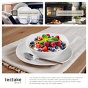 Dzięki serwisowi Salerno od tectake otrzymujesz wszechstronny zestaw naczyń, który przyciąga wzrok na stole w jadalni dzięki doskonałemu połączeniu kwadratowych i okrągłych kształtów.