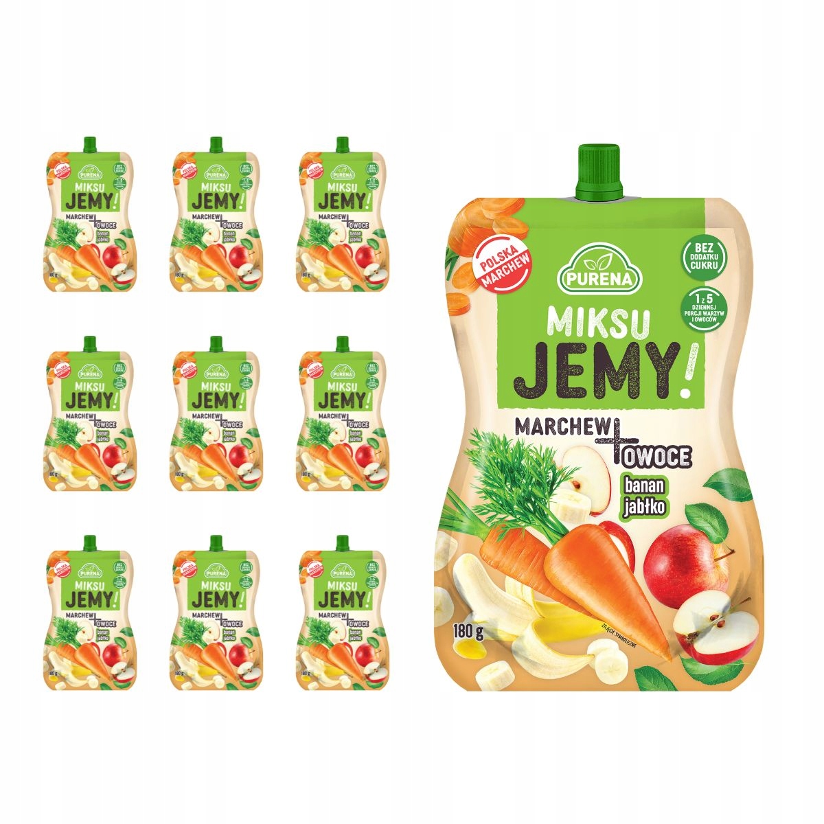 Marchwiowo-owocowa przekąska miksuJEMY od Purena – marchew z bananem i jabłkiem, 180 g w ilości 10 sztuk