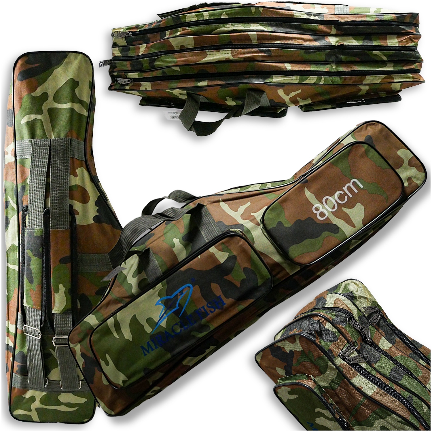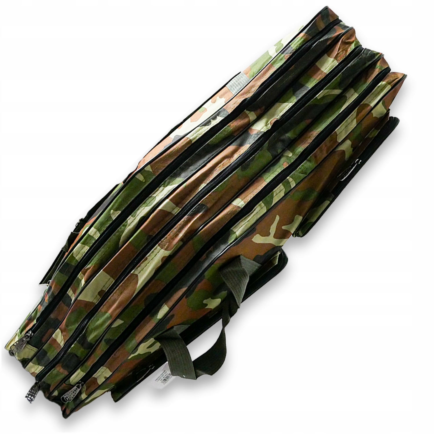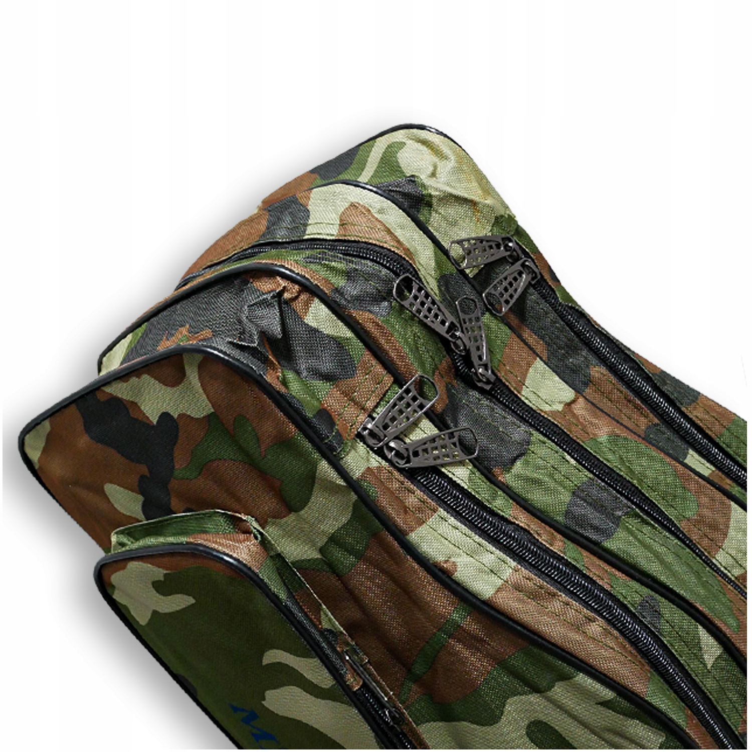 Oferowany pokrowiec posiada 3 komory i 80 cm długości. Dwie boczne kieszenie o długości 40 cm oraz 25 cm. Dla wygodnego noszenia wyposażony jest w dwa uchwyty oraz regulowane szelki na ramię.