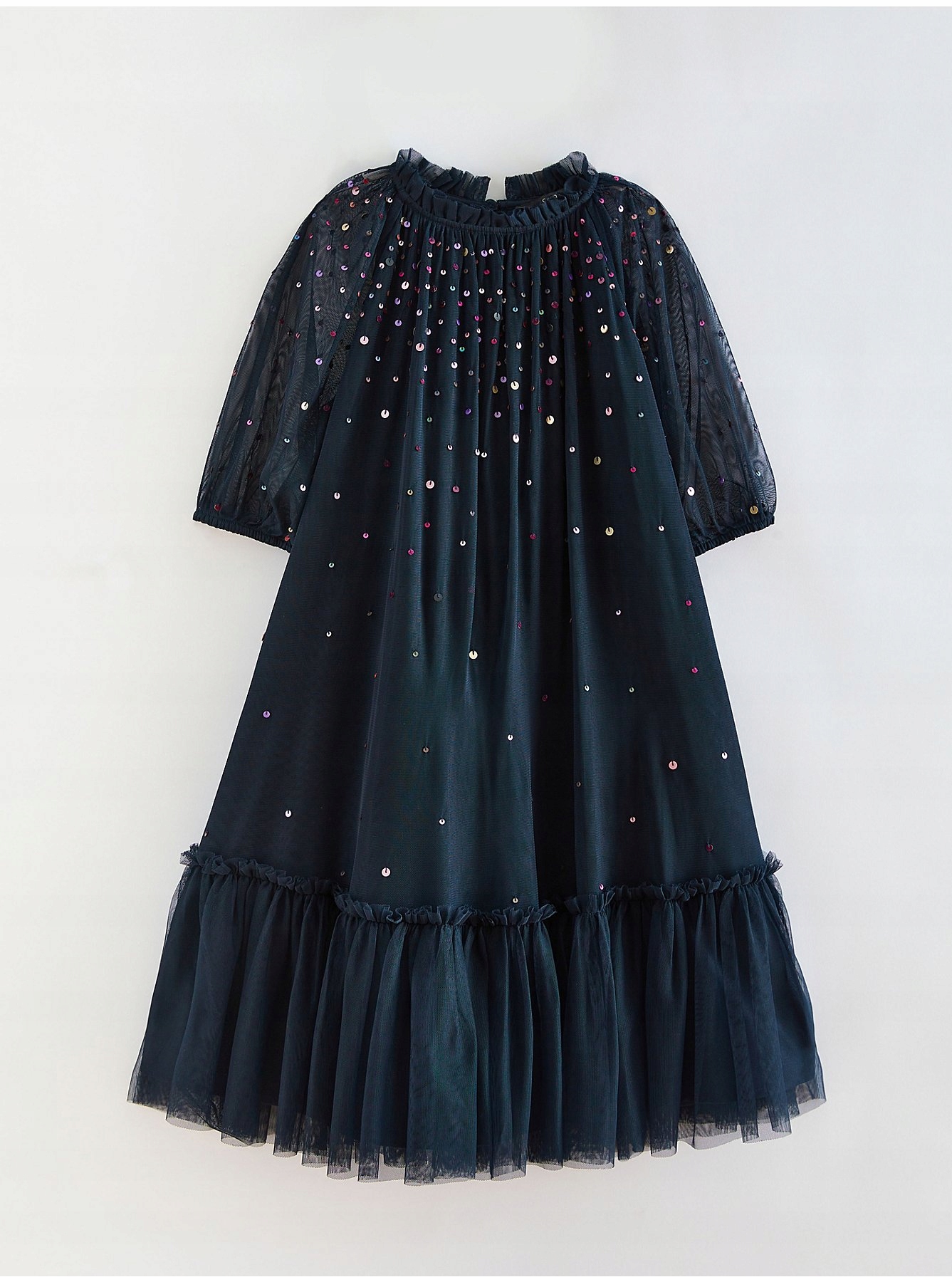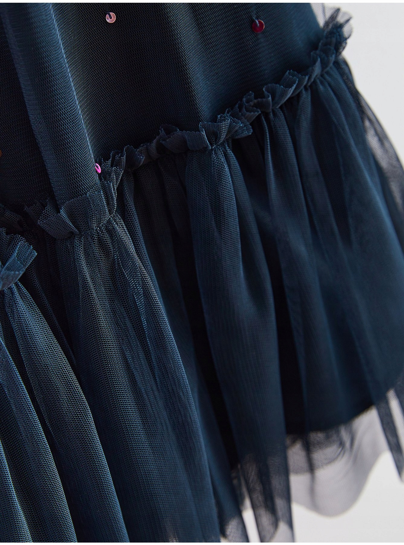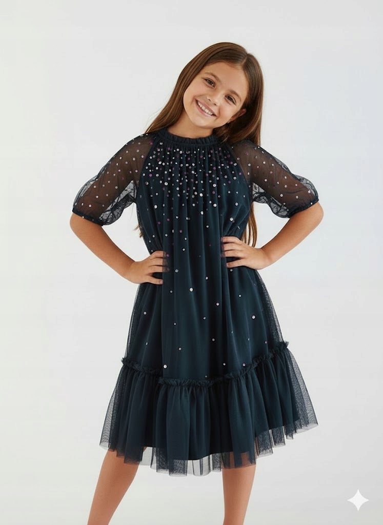 Sukienka tiulowa z podszewką, zdobiona cekinami.