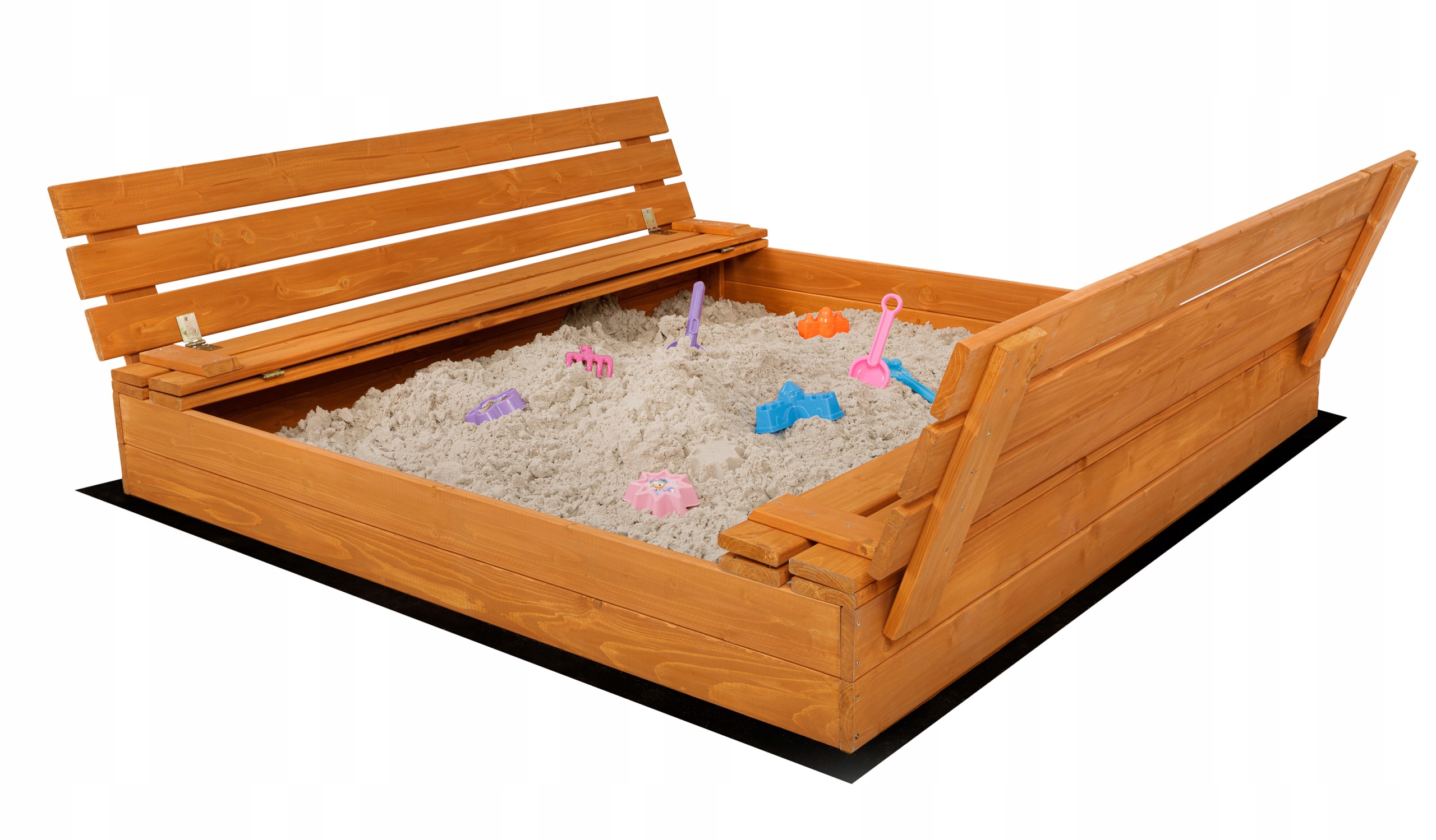 ✔️wersja zamykana, po skończonej zabawie piaskownicę można zamknąć, uniemożliwiając tym samym przebywanie w niej nieproszonych gości
