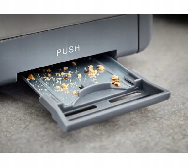 Крошки на прилавке после приготовления тостов? Горящие крошки, оставшиеся от предыдущего поджаривания хлеба? Нет! Этот тостер имеет практичный лоток, на котором все крошки скапливаются. Его можно легко извлечь и очистить.
