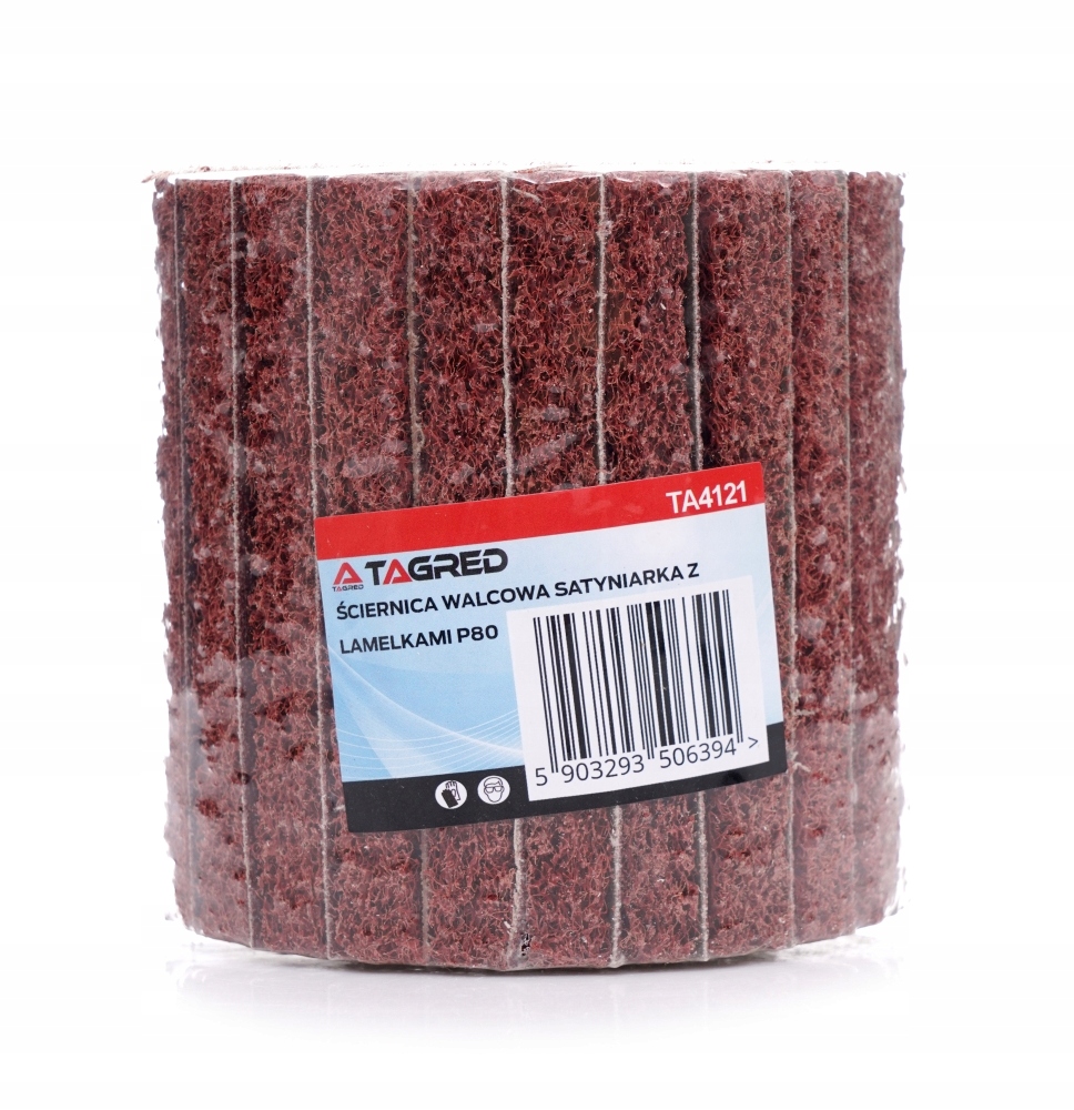 Tarczę walcową wykonano z naprzemiennie ułożonych listków płótna ściernego i włókniny. Nasza ściernica dzięki temu zapewnia jednorodny, precyzyjny szlif i estetyczne wykończenie obrabianej powierzchni. Zastosowanie płótna ściernego powoduje że szlif jest głębszy i bardziej agresywny. Włóknina TAGRED charakteryzuje się wysoką sprężystością - jej kształt idealnie dopasowuje się do obrabianej powierzchni. Walec nie zapycha się i nie przegrzewa dzięki czemu nie przebarwia i nie przypala obrabianej powierzchni.