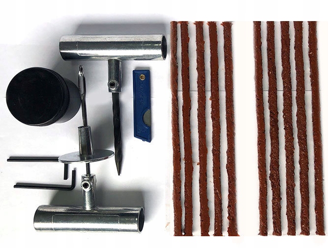 Zestaw naprawczy do samodzielnej naprawy opon. W szybki i łatwy sposób samodzielnie można naprawić przebitą opon w każdych warunkach co ważne bez konieczność demontażu koła.
