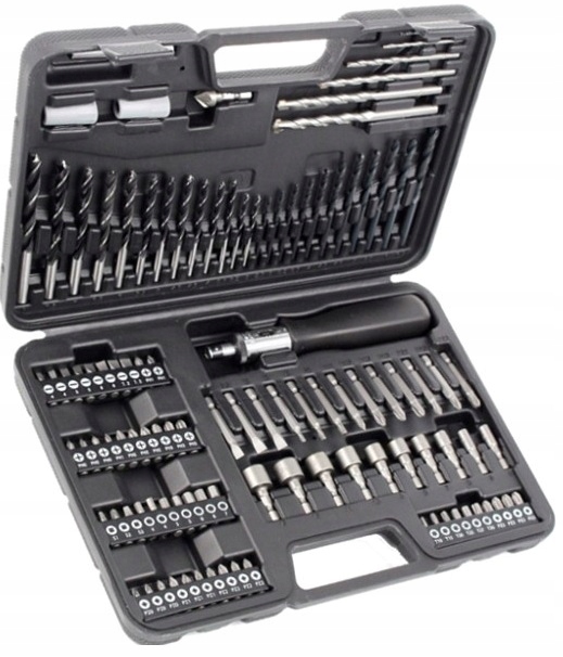 W zestawie duża ilość bitów oraz wierteł o różnych średnicach.