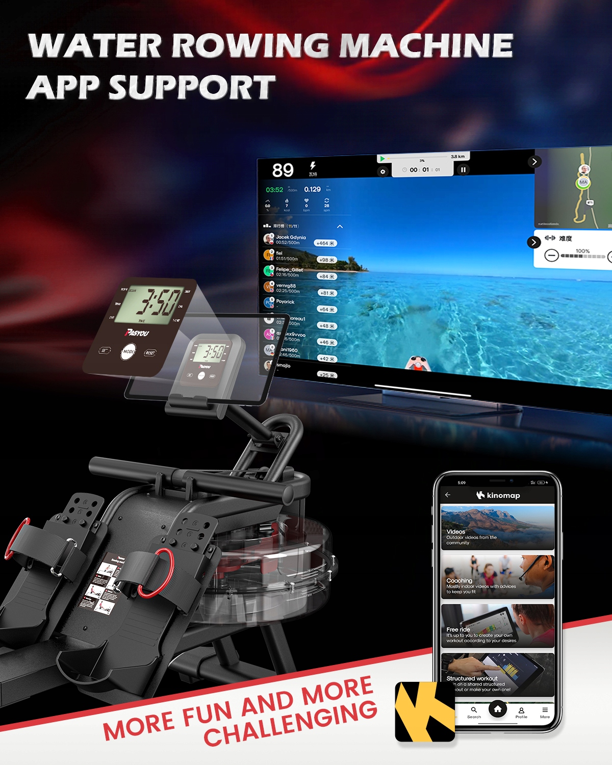 Водный гребец PASYOU PW30-это современное домашнее кардио-устройство, которое обеспечивает реалистичный опыт с водонепроницаемостью.