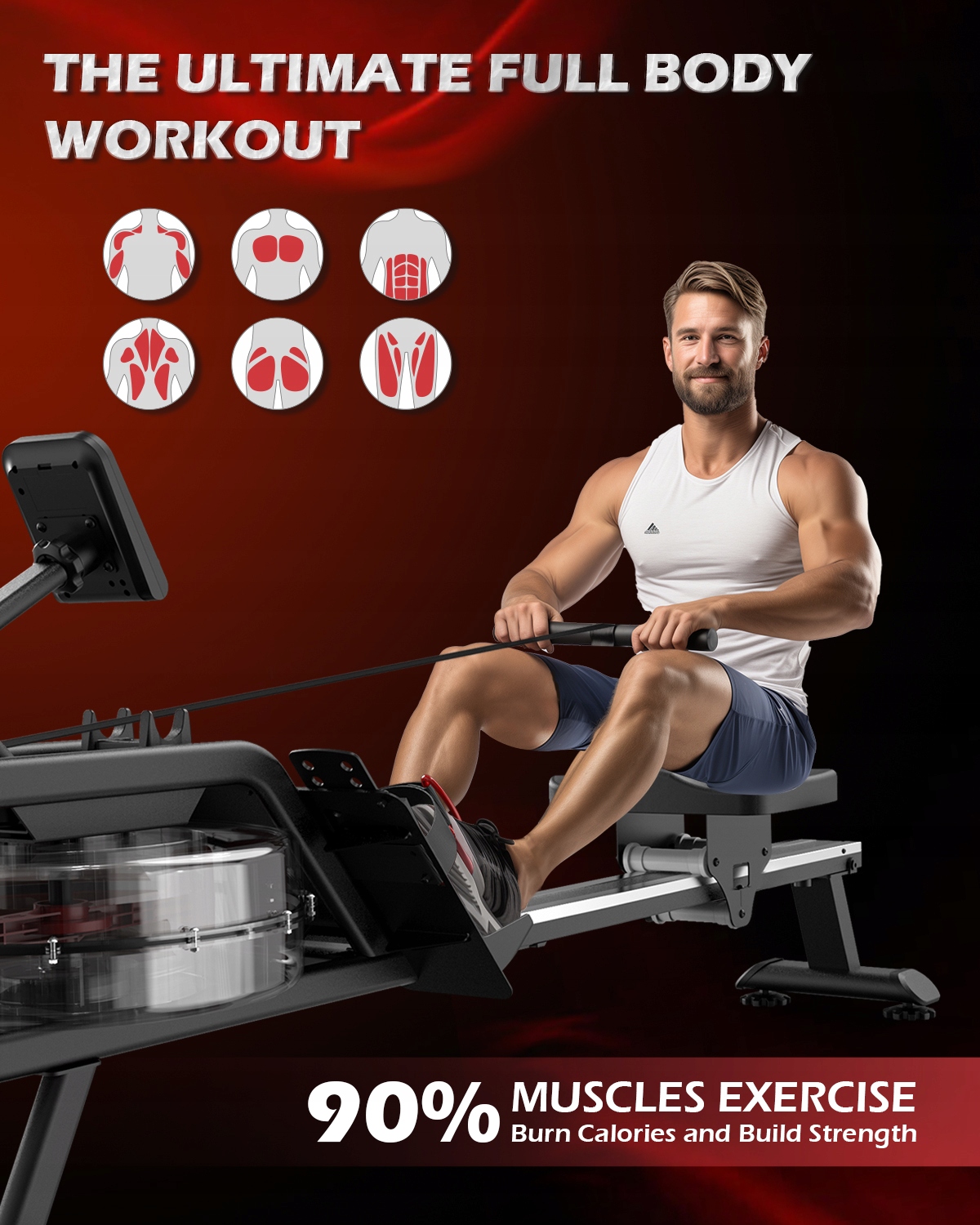 Гребец задействует несколько групп мышц одновременно, включая ноги, спина, плечи и ядро, обеспечивая полную и эффективную кардио-тренировку.