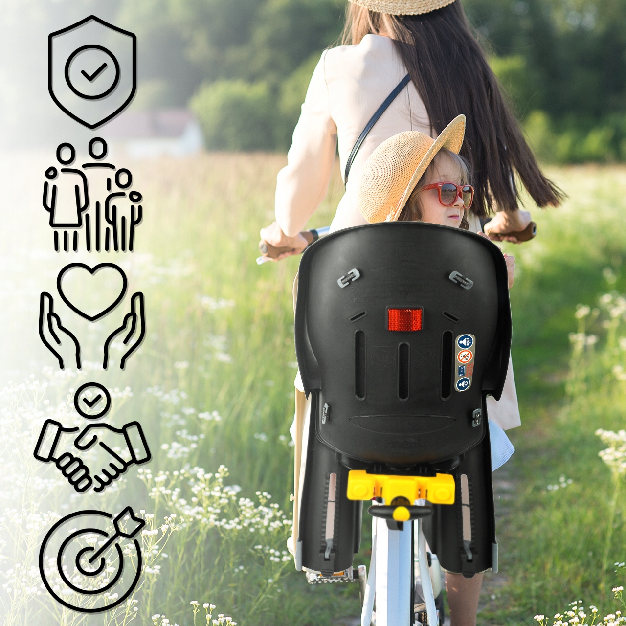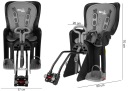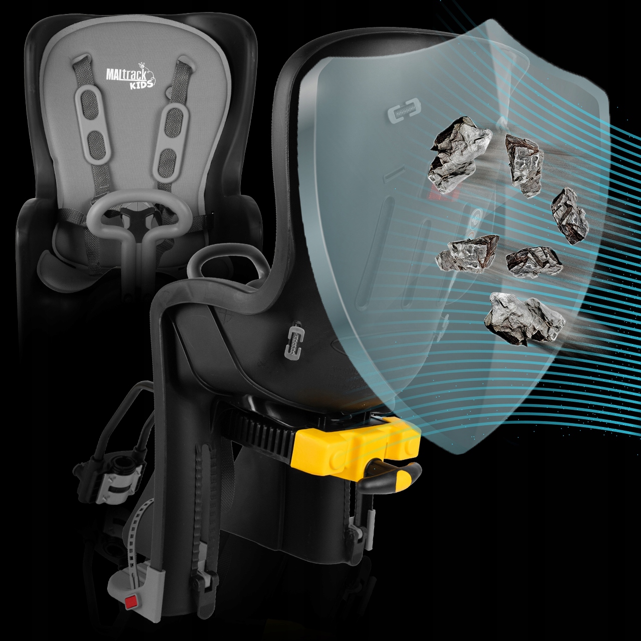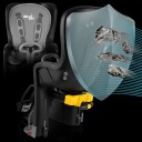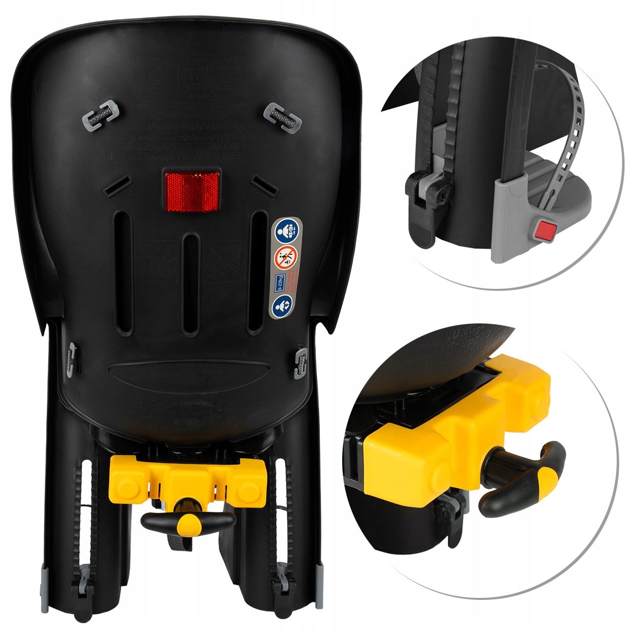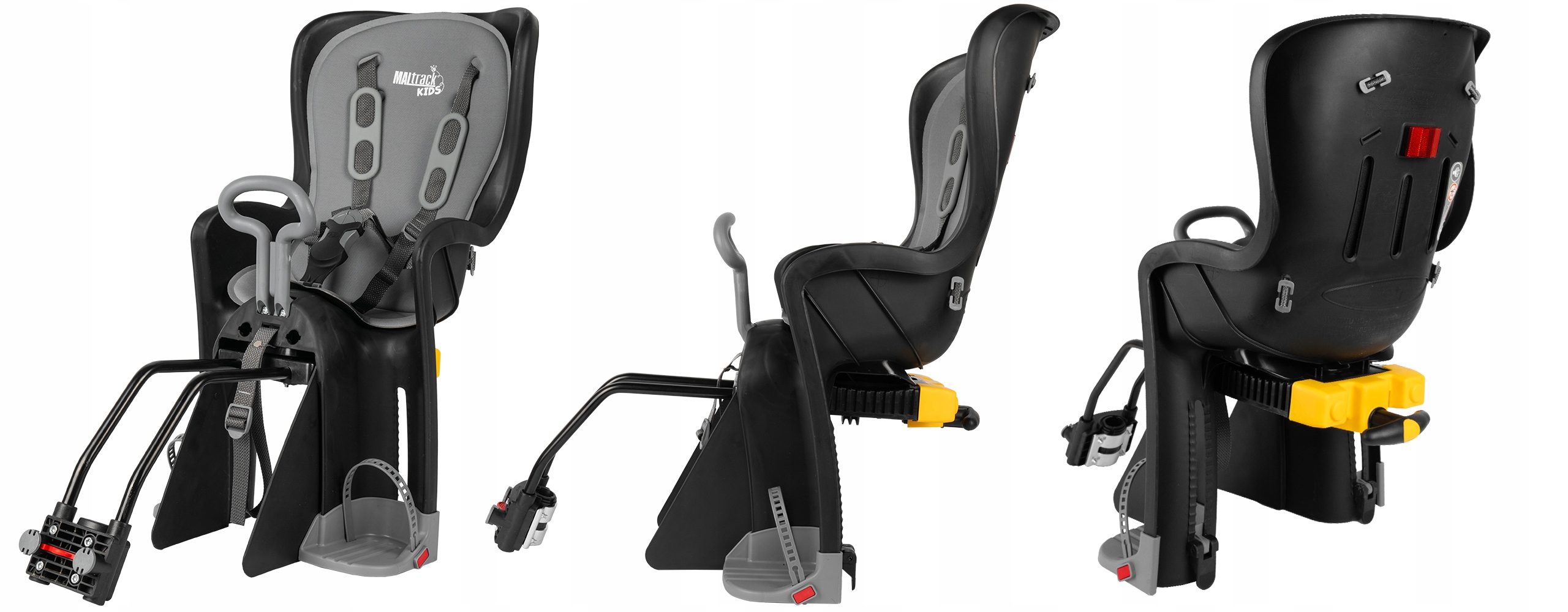 4-ступенчатая регулировка опор для ног ребенка с возможность регулируемой блокировки ног (защита от вставки ноги в спицы колеса велосипеда). Креслице чтобы он был устойчивым, его необходимо одновременно монтировать на раму. Рекомендуемый возраст от 9 месяцев до 7 лет (до 22 кг).