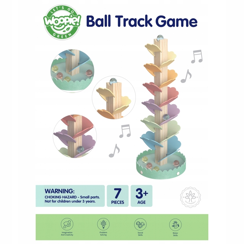 Drewniany kulodrom od WOOPIE GREEN to fascynująca zabawka, która wciąga dzieci w wir zabawy i nauki jednocześnie. Zestaw, pełen pastelowych elementów i toczących się kulek, zachwyca maluchy swoją prostotą, a jednocześnie angażuje na długie godziny. Każde puszczenie kulki to nie tylko radosne śledzenie jej toru, ale także pierwsza lekcja fizyki i logiki. Dodatkowo, delikatne dźwięki, jakie wydają spadające kulki, przypominają grę na cymbałkach, co sprawia, że zabawa staje się jeszcze bardziej interesująca i stymulująca.