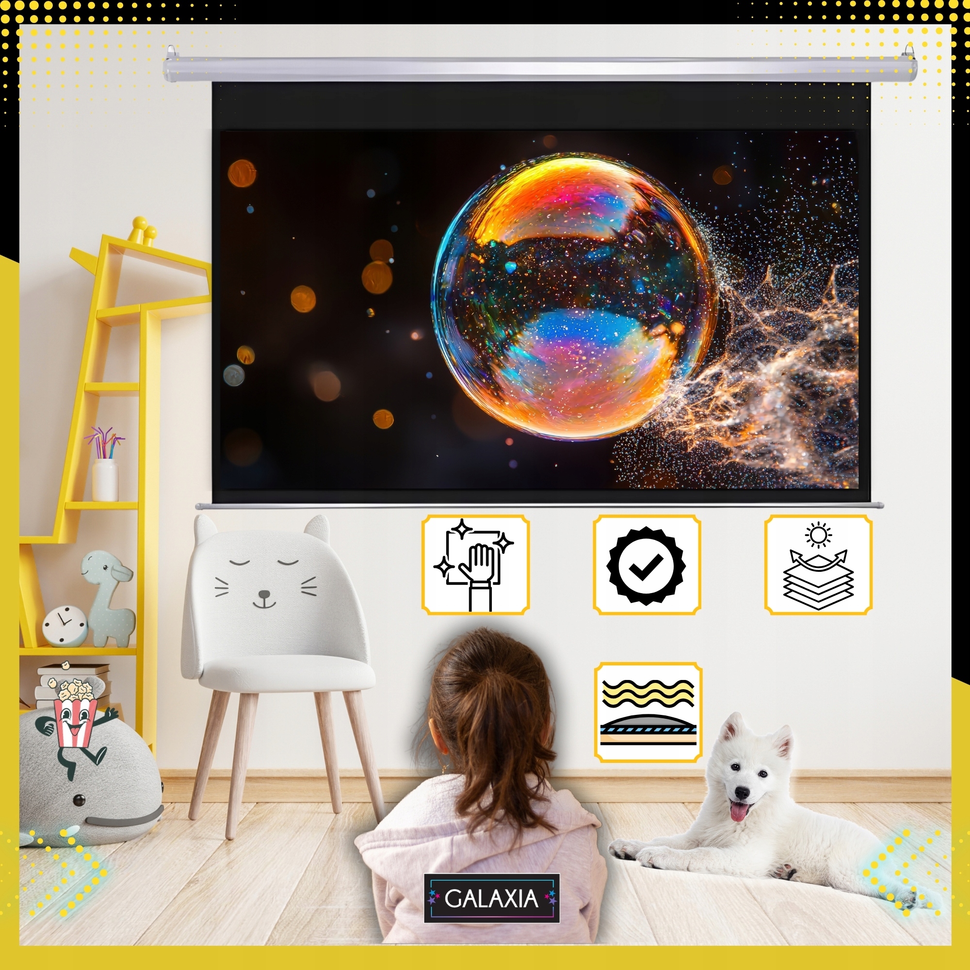 Nowoczesny, funkcjonalny i łatwy w obsłudze – ekran projekcyjny GALAXIA™ to świetny pomysł na prezent dla każdego, kto kocha filmy, gry i nowe technologie. Gwarantujemy, że obdarowana osoba będzie zachwycona!