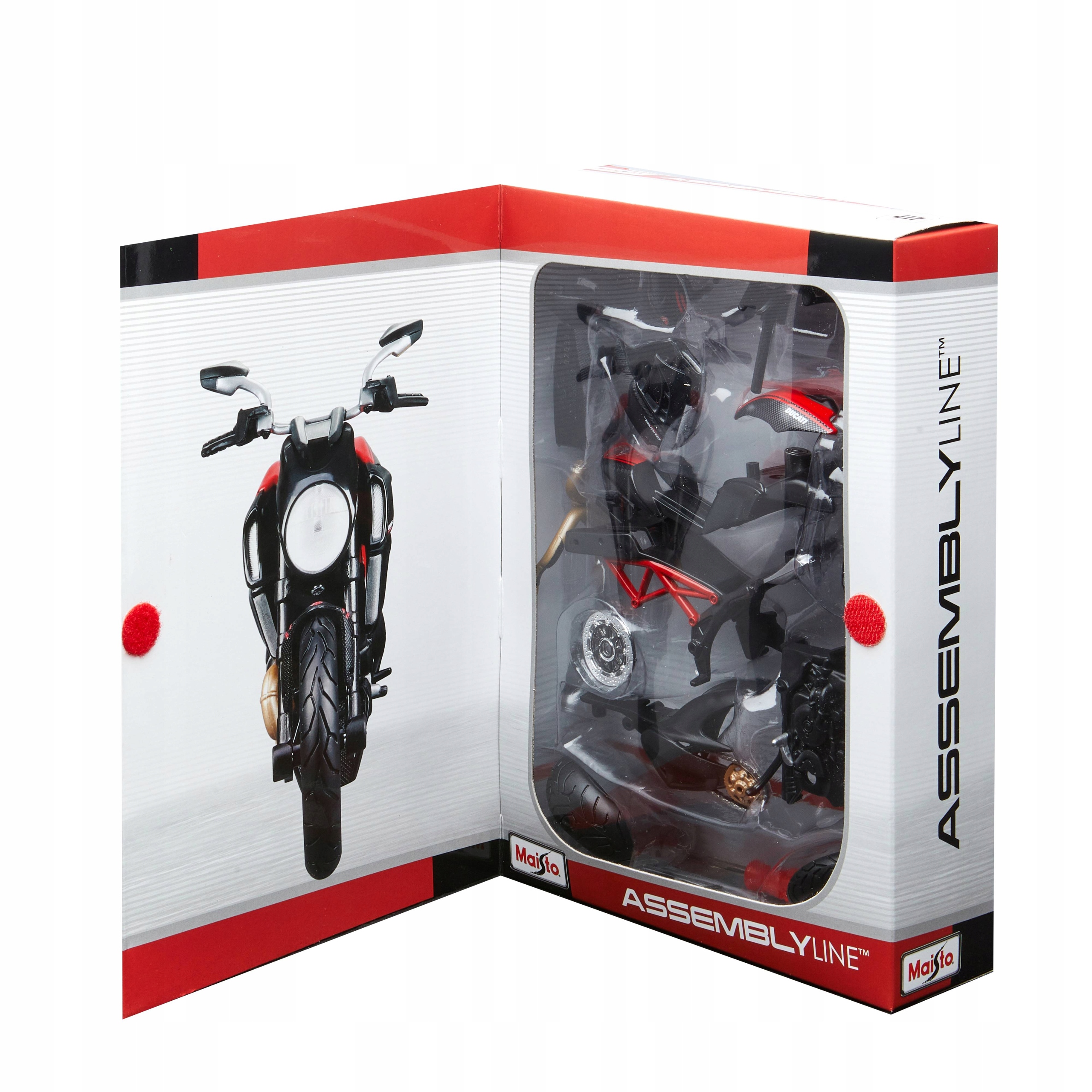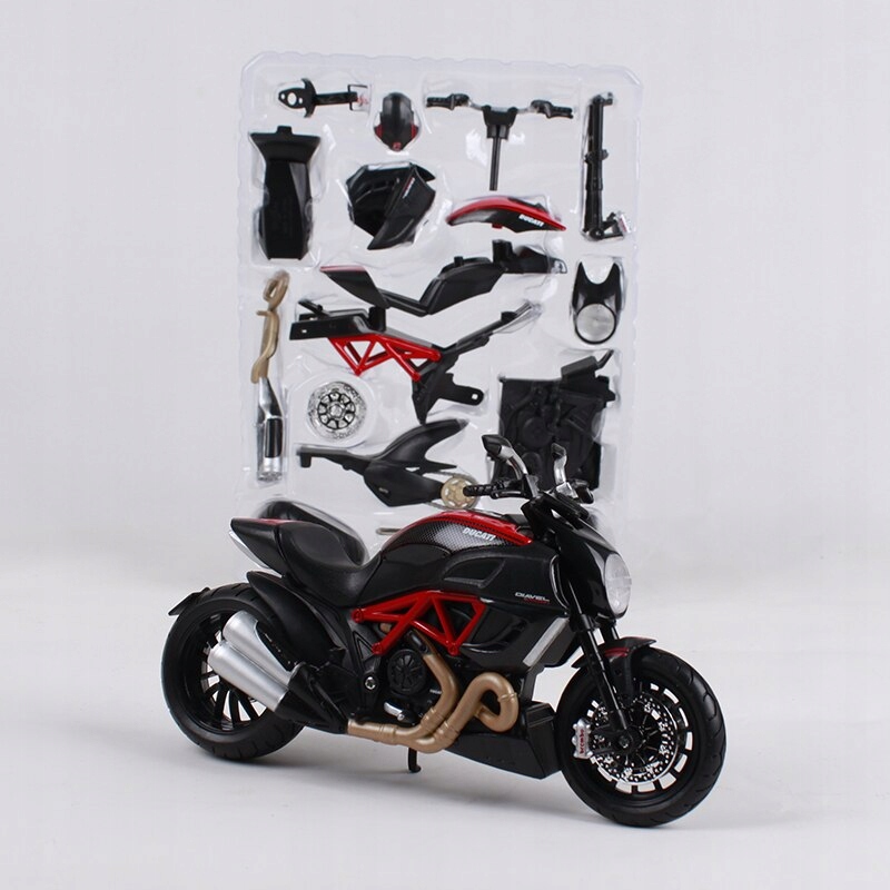 Motocykle posiadają ruchome elementy, pomalowane metalowe i plastikowe elementy konstrukcyjne, gumowe koła i amortyzowane tylne zawieszenie. Po złożeniu otrzymujemy w pełni funkcjonalny, jeżdżący pojazd idealny jako zabawka dla dziecka lub model dla kolekcjonera. Model jest wyposażony w nóżkę, na której można go postawić.