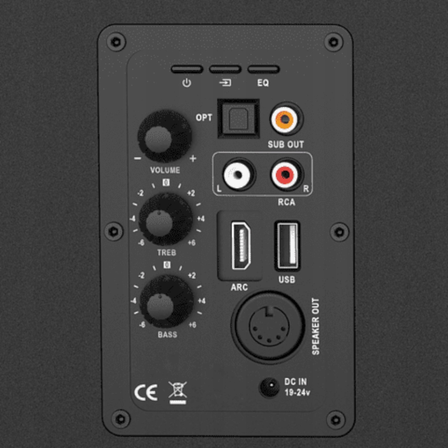 TV AUDIO CONNECT: Ten model został wyposażony w funkcję TV AUDIO CONNECT, czyli port HDMI z kanałem zwrotnym ARC. To idealne rozwiązanie do podłączenia tych głośników do telewizora, który również jest kompatybilny z HDMI ARC. HDMI ARC to obecnie coraz bardziej standardowa opcja przesyłania sygnału audio z telewizora do urządzeń peryferyjnych, w tym aktywnych głośników. Poza przesyłaniem sygnału audio HDMI ARC umożliwia również sterowanie niektórymi funkcjami odpowiedzialnymi za regulację dźwięku przy użyciu jednego pilota. Dzięki temu pilotem od telewizora można kontrolować poziom głośności głośników lub wyciszyć go. To bardzo wygodne rozwiązanie, ponieważ eliminuje konieczność używania kilku pilotów, do sterowania całym systemem. HDMI ARC umożliwia również automatyczne włączanie i wyłączanie głośników w momencie włączenia lub wyłączenia telewizora – kolejna praktyczna zaleta. Funkcja ta w niektórych typach telewizorów wymaga aktywowania w menu telewizora – warto zatem o tym pamiętać.