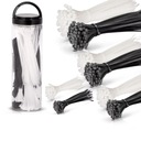 Zestaw czarno białych opasek zaciskowych . Dzięki różnorodnym kolorom i rozmiarom, te opaski doskonale sprawdzą się zarówno w domu, jak i w profesjonalnych zastosowaniach. W zestawie znajduje się aż 1000 sztuk opasek, co zapewnia wszechstronność i zapas na długi czas: