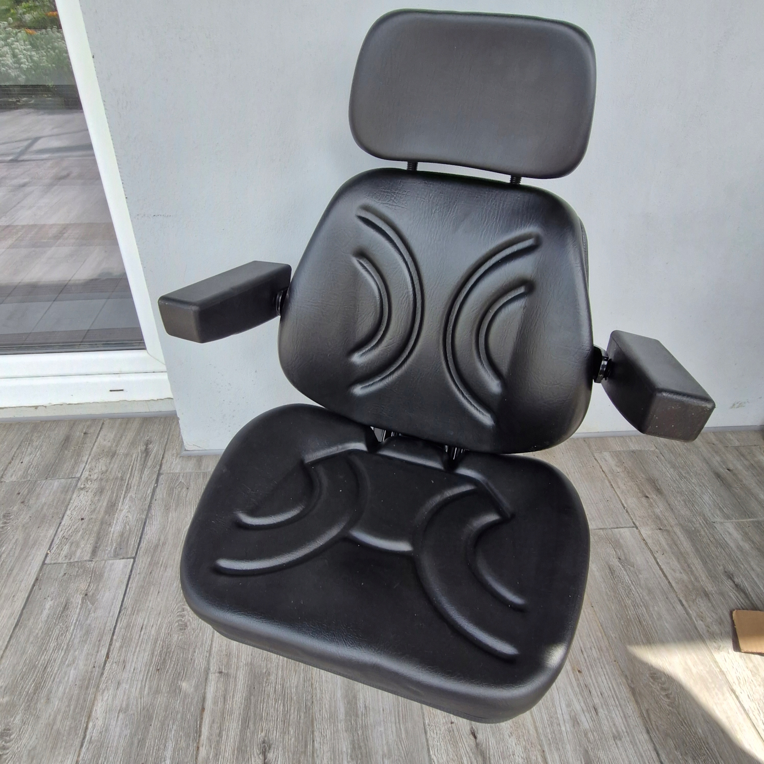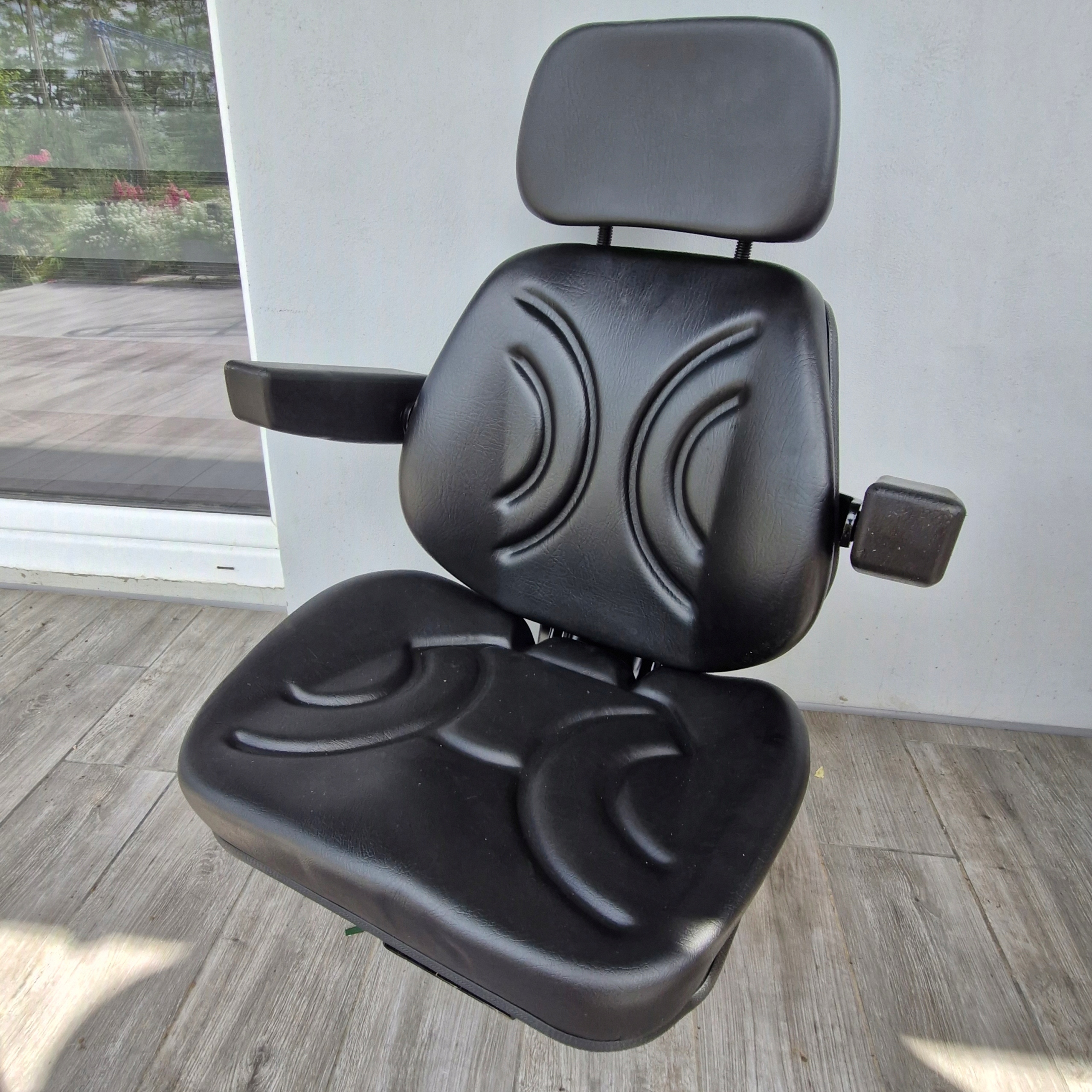 Siedzenie do ciągnika Ursus C-330, C-360, 385, Zetor i Massey Ferguson to solidny i wygodny fotel wyposażony w podłokietniki oraz zagłówek, zapewniający komfort nawet przy długiej pracy w polu. Wykonany z trwałych materiałów, odpornych na zużycie i warunki atmosferyczne, doskonale sprawdza się w maszynach rolniczych, budowlanych i transportowych.