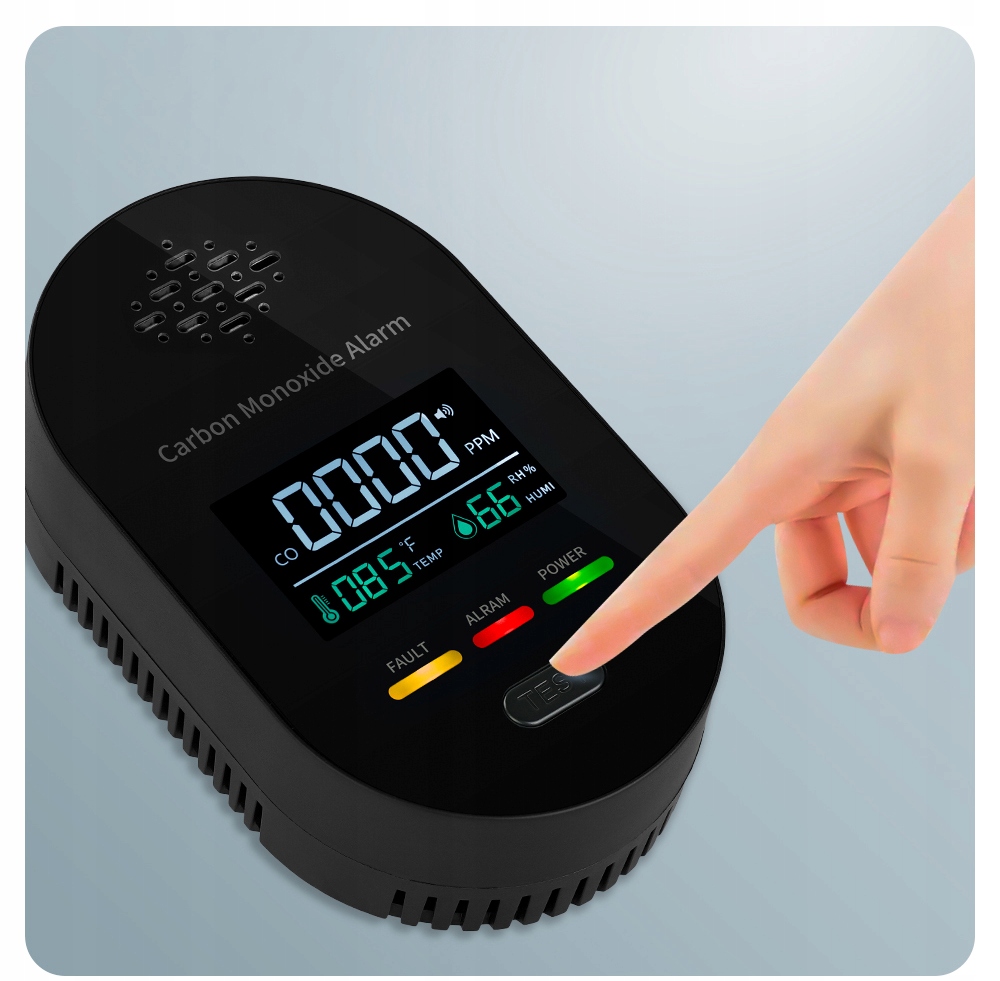 Ten cyfrowy detektor tlenku węgla jest wyposażony w kolorowy ekran o wysokiej rozdzielczości, a powierzchnia jest chroniona soczewką akrylową, która może jednocześnie wyraźnie wyświetlać informacje o temperaturze, wilgotności i stężeniu tlenku węgla. Wielokolorowe oświetlenie LED, czytelne wskazanie funkcji (żółty, czerwony, zielony, trzy wskaźniki odpowiadają: usterce, alarmowi, statusowi monitorowania), wszystkie przejrzyste wyświetlacze pozwalają jednym rzutem oka zrozumieć stan jakości powietrza!