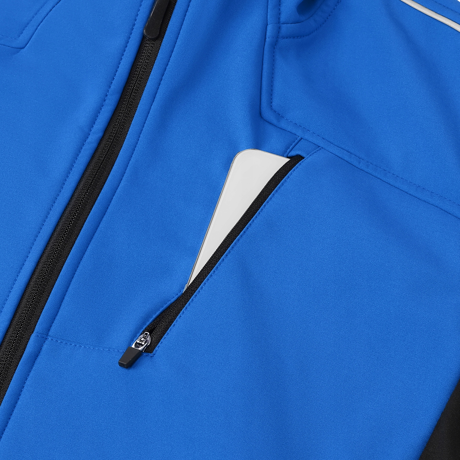 ✔️ Przód kurtki – odblaskowe detale wzdłuż suwaka oraz na piersi poprawiają widoczność z przodu.