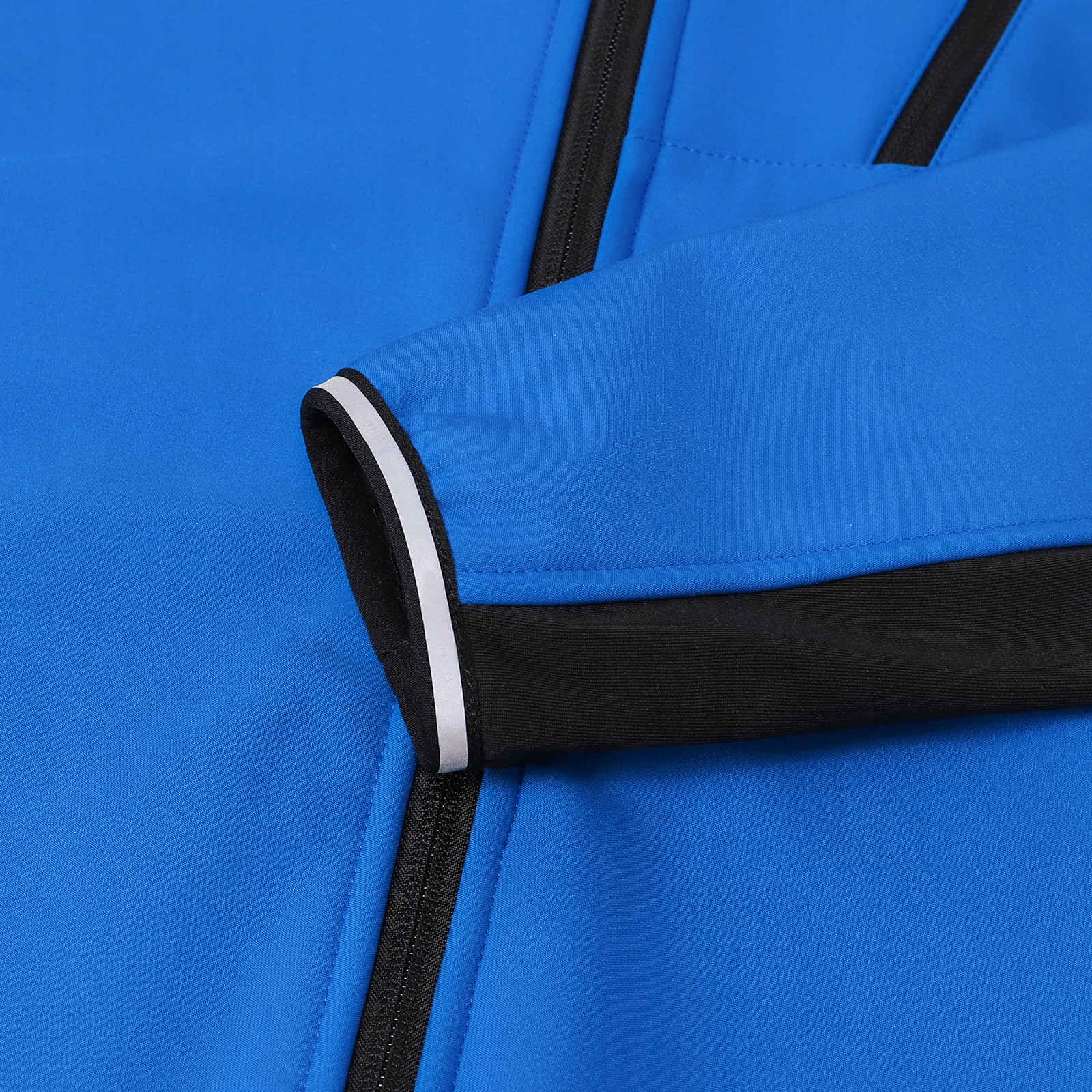 ✔️ Rękawy – odblaskowe paski na mankietach, które poprawiają widoczność podczas ruchu rąk.