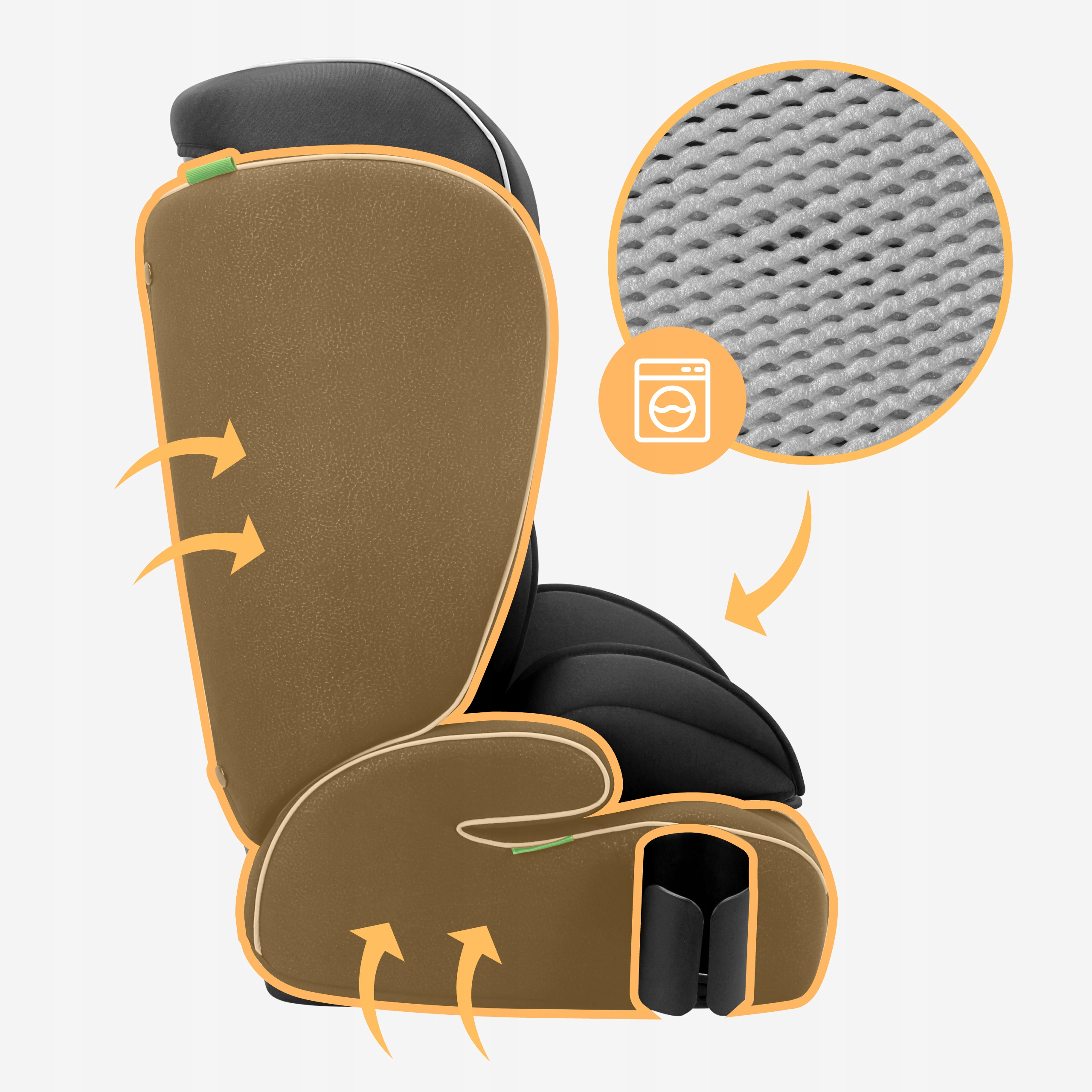 Możliwość demontażu wkładki i pasów – dla starszych dzieci (105–150 cm).