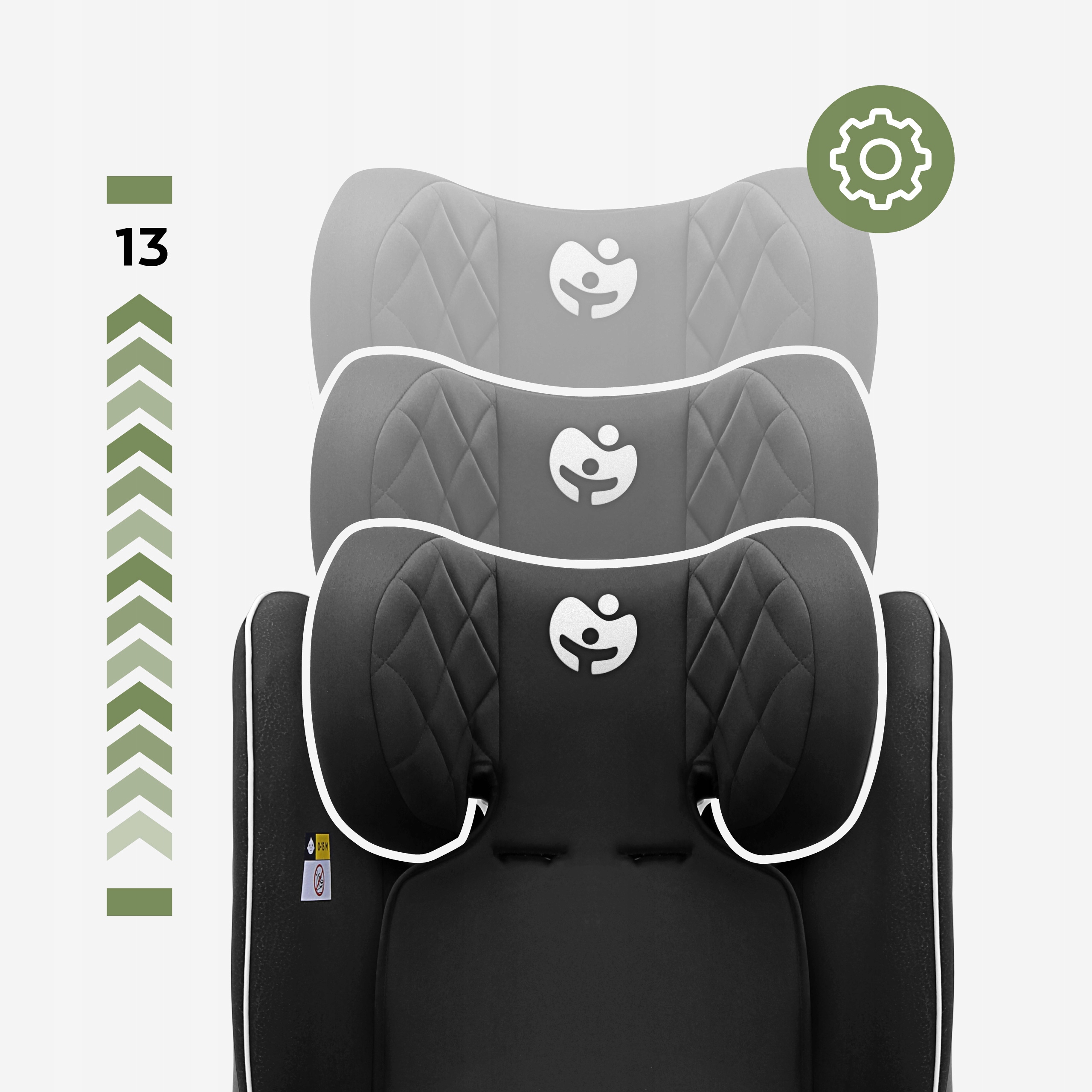 13-stopniowa regulacja zagłówka – łatwe dopasowanie do wzrostu dziecka.