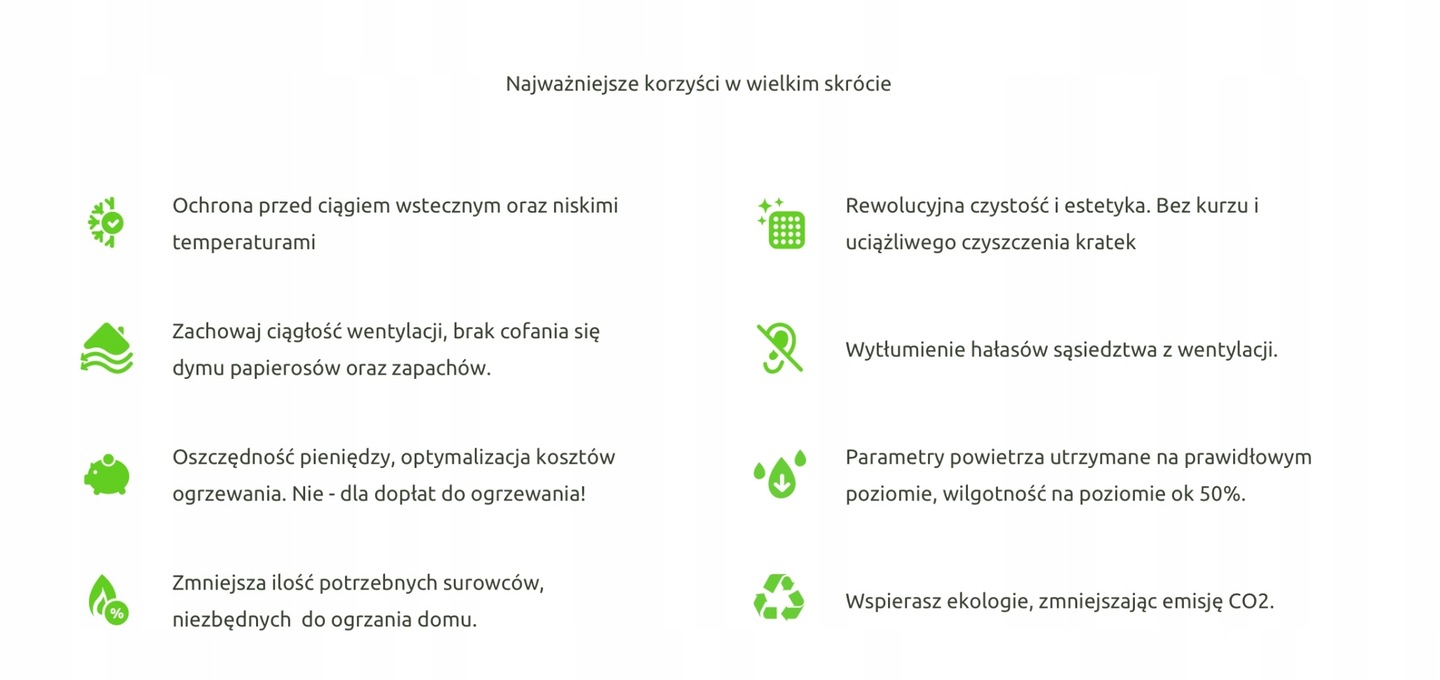 Примечание блокировка вентиляционного канала вредит здоровью Вашей семьи, а точнее грозит отравлением диоксидом углерода (CO2). Решетка autoaktywna это непрерывность вентиляции без блокировки канала. Равномерно отводит отработанный воздух для канала вентиляции, а оттуда в атмосферу.
