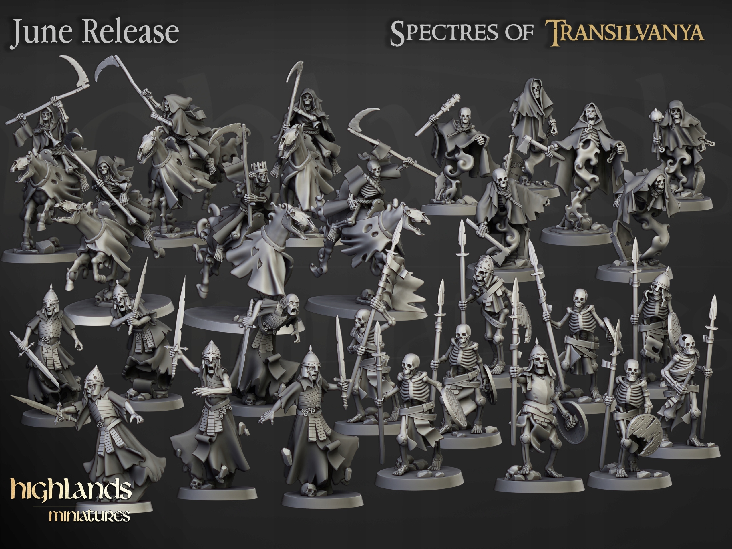 Название Skeleton Warriors Unit CMD - Highlands Miniatures