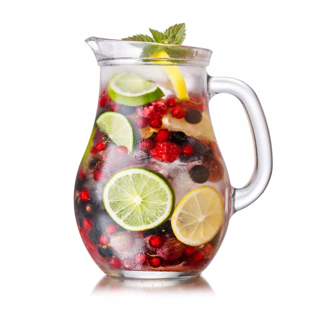 Solidny dzbanek z wygodnym uchwytem, w którym można serwować soki, wodę lub inne napoje. Sprawdzi się zarówno w gastronomii, jak i w domowym użytku.