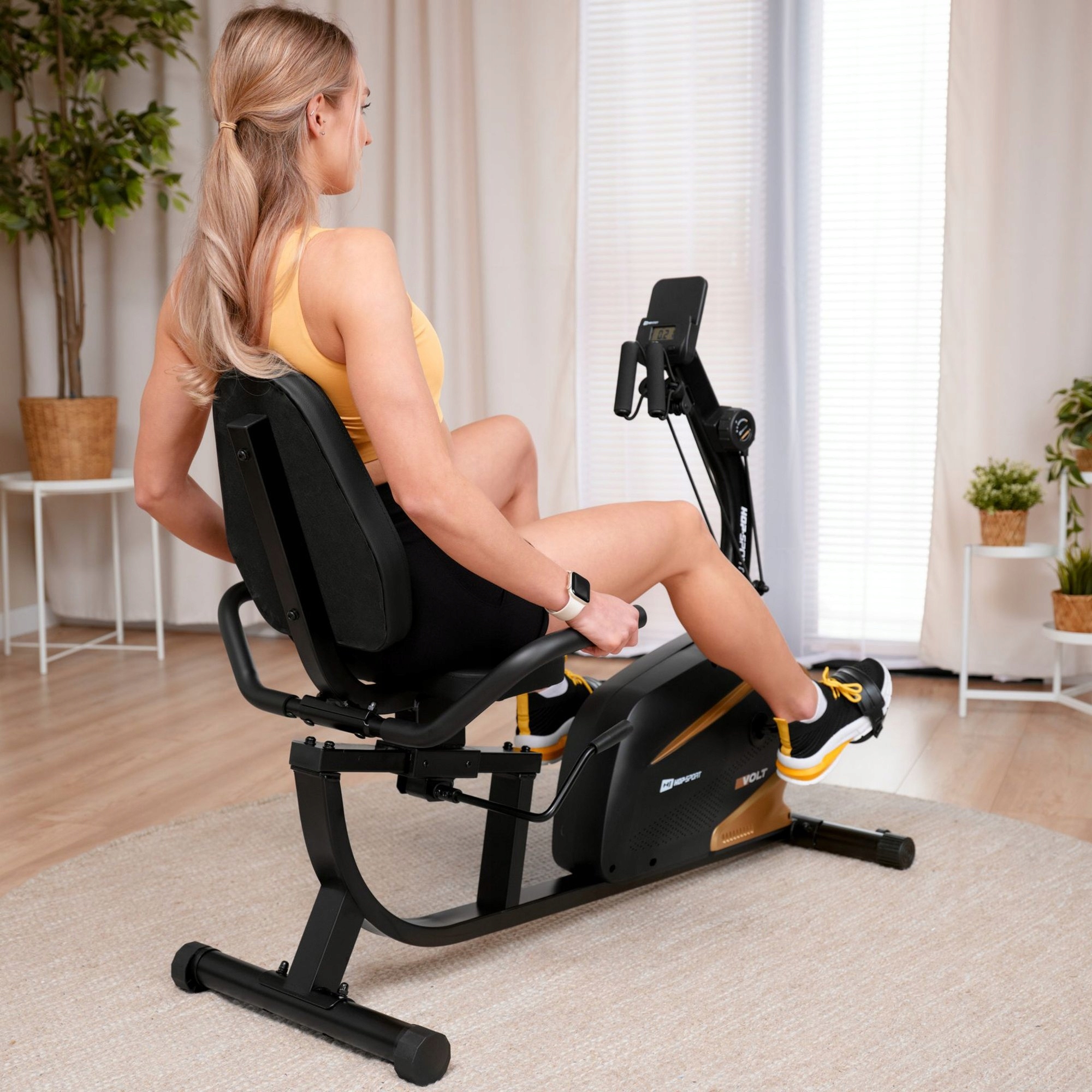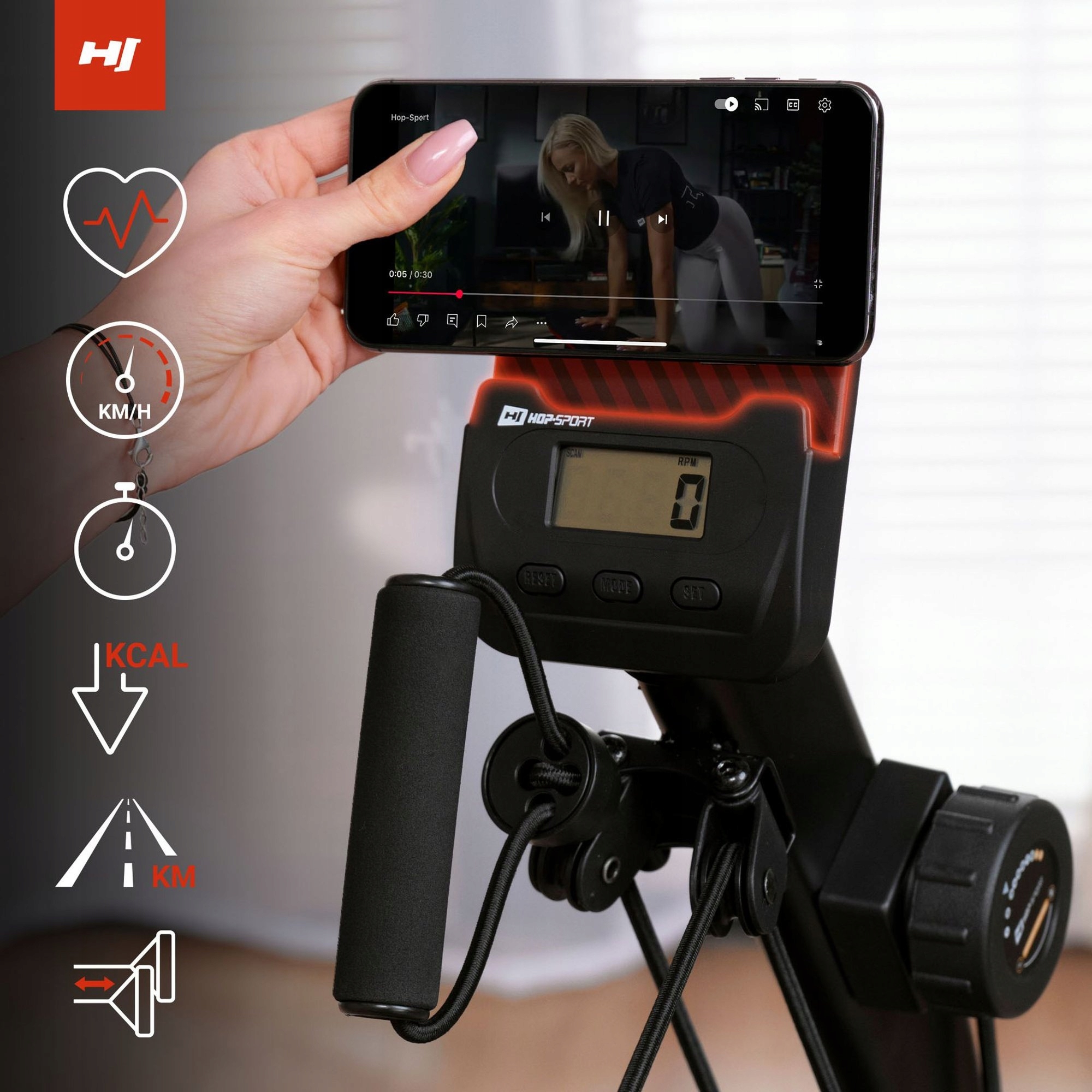 Rower stacjonarny poziomy HS-045L Volt został wyposażony w prosty i intuicyjny w obsłudze komputer treningowy, który na bieżąco monitoruje najważniejsze parametry treningu, takie jak czas, dystans, prędkość, kalorie i puls. Dzięki funkcji SCAN użytkownik może śledzić wszystkie dane w zapętlonym cyklu, co ułatwia bieżące kontrolowanie postępów. Dodatkowym atutem rowerka treningowego jest podstawka na tablet lub telefon, która umożliwia oglądanie ulubionych treści podczas ćwiczeń.