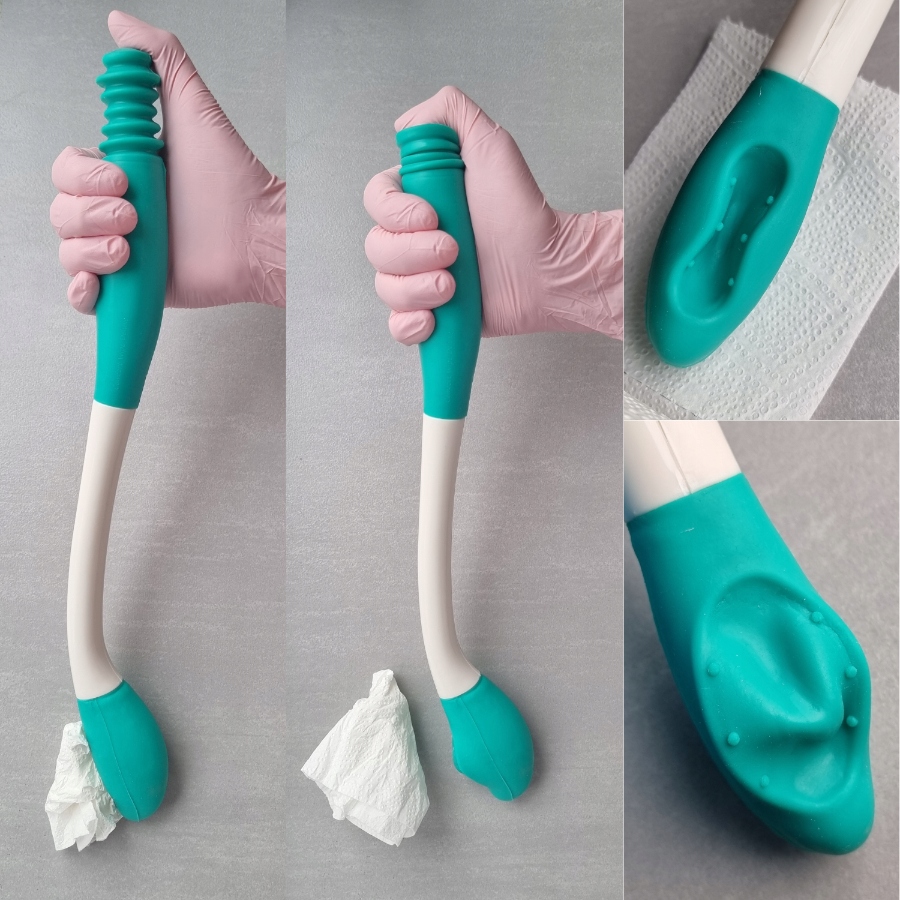 ✅ Podcieracz, jest to proste, ręczne narzędzie, które pozwala na łatwiejsze i bardziej higieniczne podcieranie się papierem toaletowym. Ma formę uchwytu, do którego przymocowuje się papier, co minimalizuje kontakt z rękami. Ułatwia utrzymanie higieny intymnej gdy nie jest to w pełni możliwe.