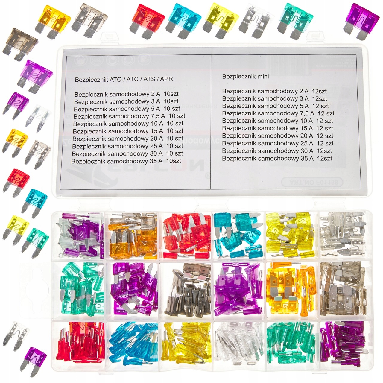 Profesjonalny zestaw bezpieczników ATO/ATC/ATS/APR oraz ATM Mini – idealny do samochodów osobowych, dostawczych, motocykli i innych pojazdów elektrycznych.