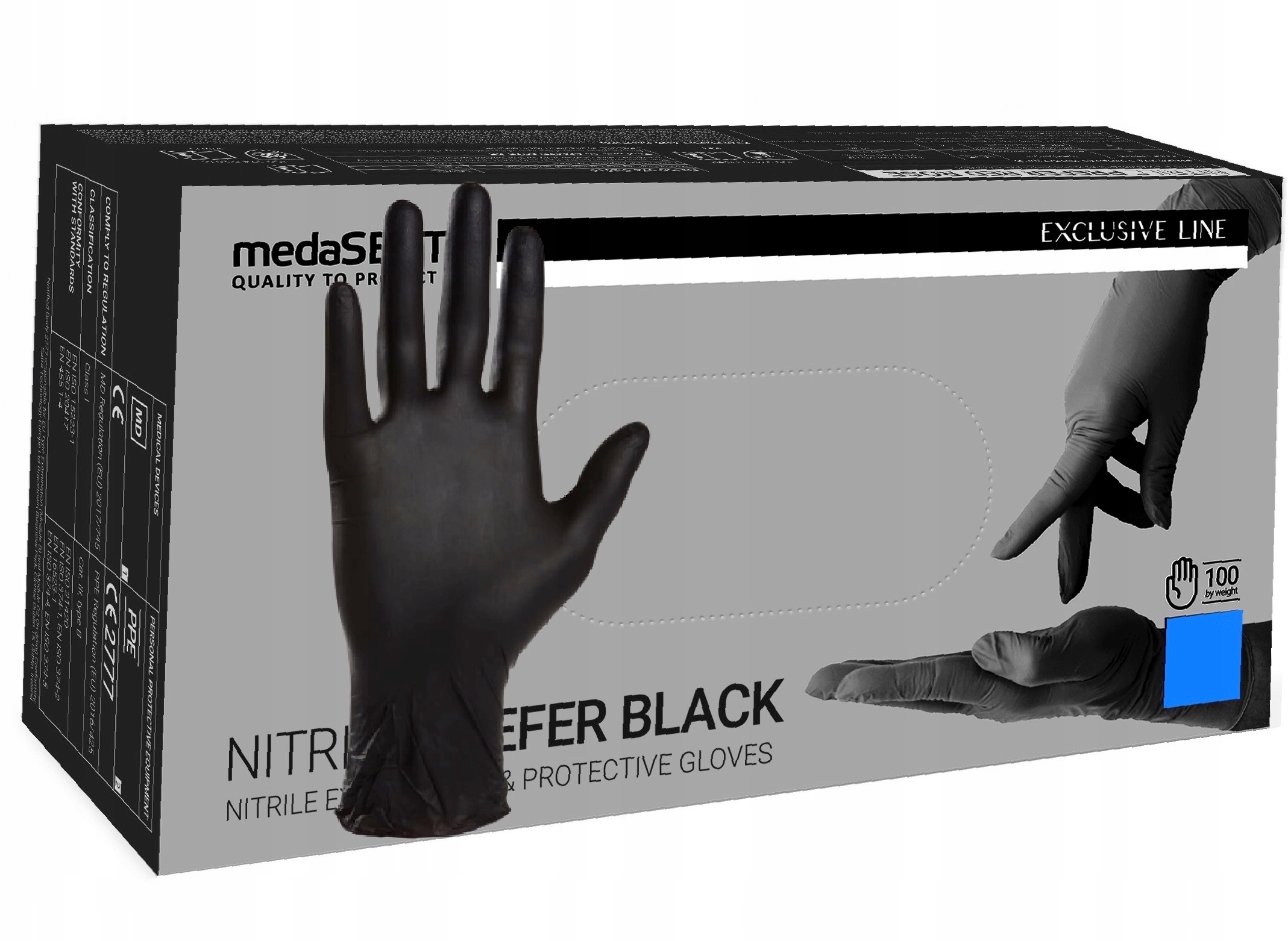 Nitrile exclusive Prefer Black to jednorazowe rękawiczki nitrylowe o charakterze diagnostycznym i ochronnym, wyróżniające się unikalnym, kryjącym czarnym kolorem. Są to jedyne oryginalne rękawice dostępne na rynku w tak intensywnym odcieniu czerni, co sprawia, że są wyjątkowe i łatwo rozpoznawalne.