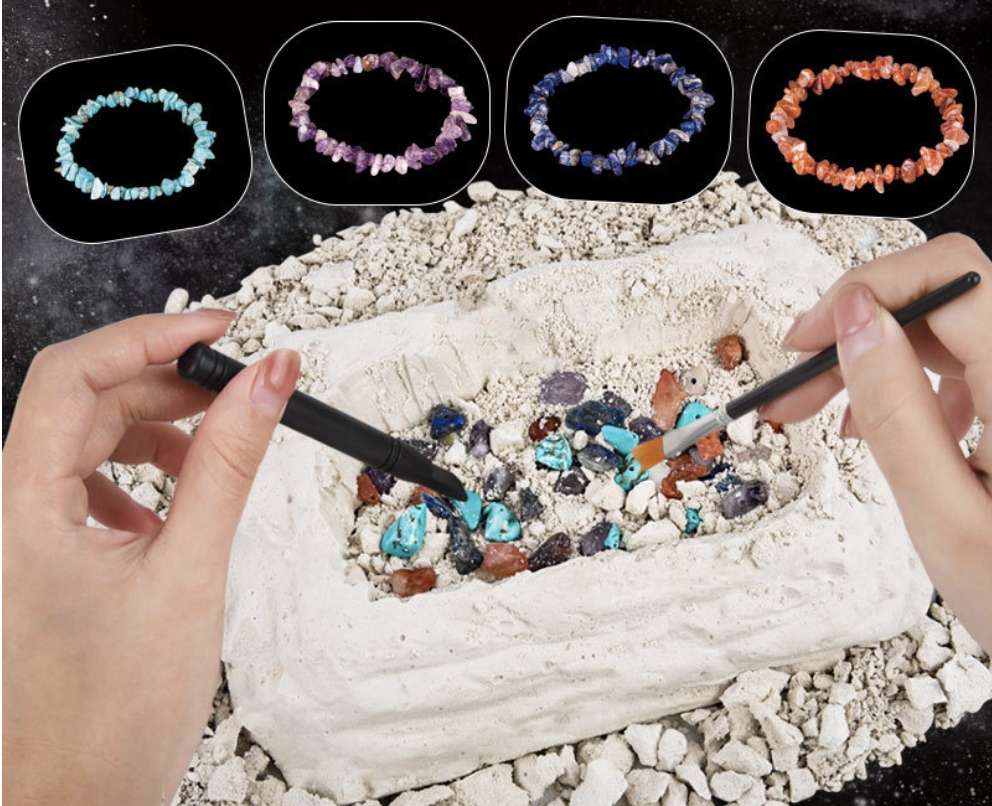 Q: Ile czasu zajmuje wydobycie wszystkich kamieni? A: Wydobycie kamieni może zająć od 1 do 2 godzin, w zależności od tempa pracy dziecka.