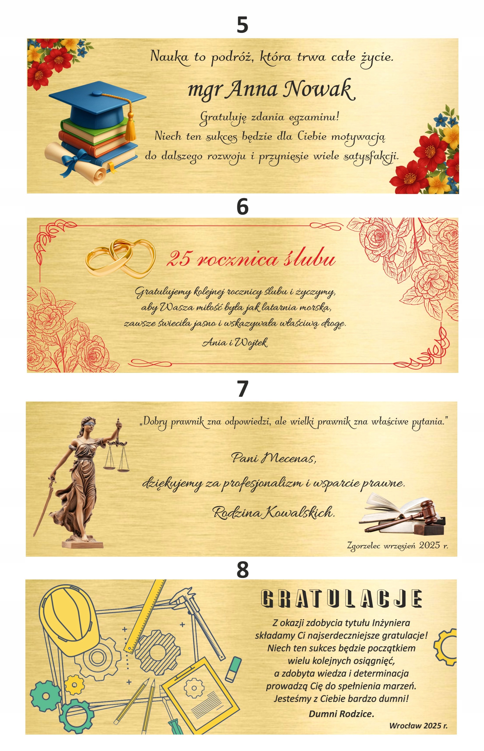 5.Numer tabliczki oraz kolor tabliczki złoty lub srebrny.