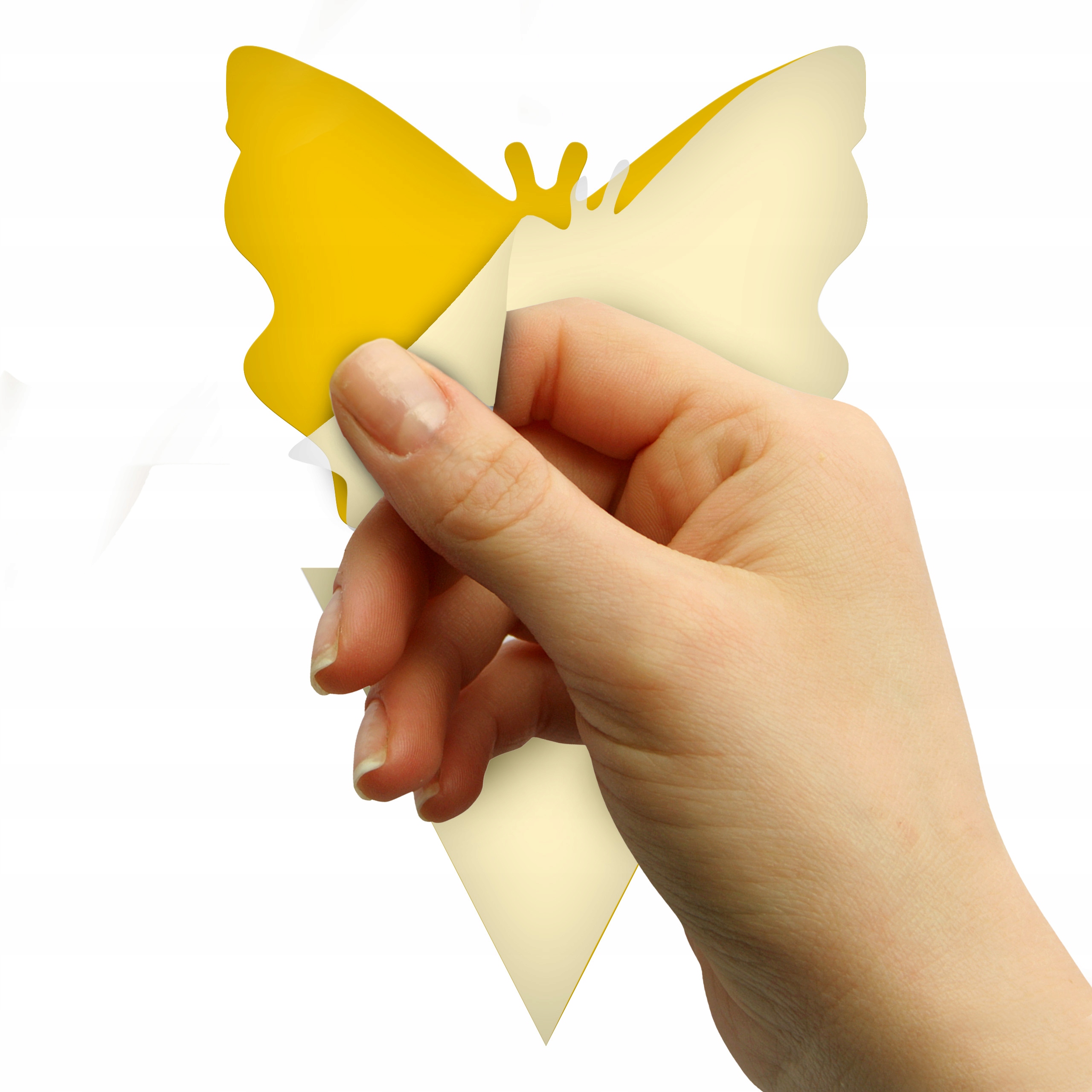 Insekt w momencie zbliżenia do motylka, przykleja się szybko do warstwy klejącej entomologicznego kleju. W opakowaniu znajduje się 15 sztuk arkuszy (motylków i kwiatków), które należy równomiernie umieścić w doniczkach, blisko roślin.