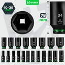 ✅ Długie i głębokie ► 20 długich nasadek (78 mm) w rozmiarach od 10 mm do 38 mm, idealnych zarówno do standardowych, jak i bardziej wymagających zastosowań