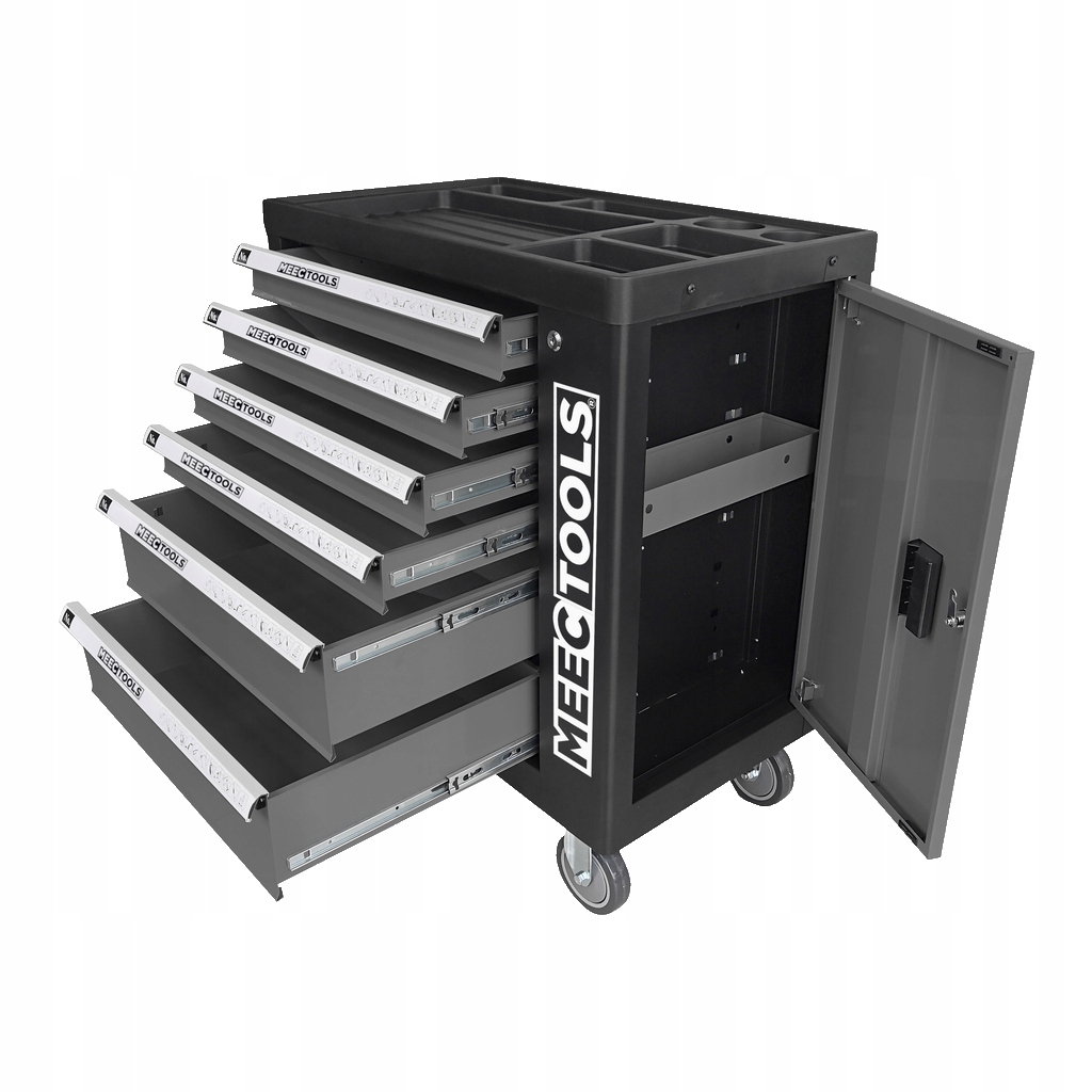 Solidny wózek narzędziowy marki Meec Tools to doskonałe rozwiązanie dla wszystkich, którzy mają duże potrzeby. Poza wyjątkowo stabilnym wózkiem narzędziowym i warsztatowym o maksymalnym obciążeniu 300 kg w zestawie znajduje się także spory pakiet narzędzi zawierający aż 167 elementów!