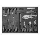 Wózek jest wyposażony w łącznie sześć zamykanych szuflad z łożyskami kulkowymi. Do ich otwarcia konieczne jest delikatne pociągnięcie ręką – nie zachodzi zatem ryzyko, że wysuną się ze względu na nierówne podłoże. Trzy szuflady zawierają wysokiej jakości piankowe formy do narzędzi dołączonych do wózka. Trzy pozostałe szuflady są puste.