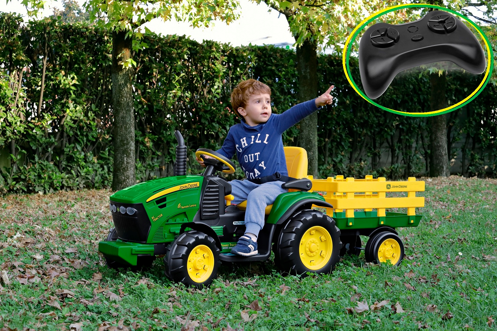 Działa zdalnie z pilota lub samodzielnie przez dziecko, więc rośnie razem z nim – od pierwszej jazdy aż po samodzielne wyprawy po ogrodzie. A to wszystko w stylu prawdziwego John Deere'a!