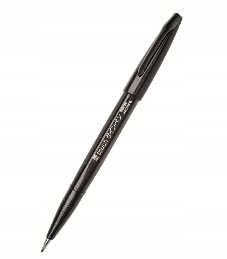 Pentel Brush Sign Pen to pisaki z końcówką pędzelkową do kaligrafii i liternictwa dla początkujących i zaawansowanych użytkowników. Znany w mediach społecznościowych jako “Pentel Touch Brush Pen”. Kolor: Czarny