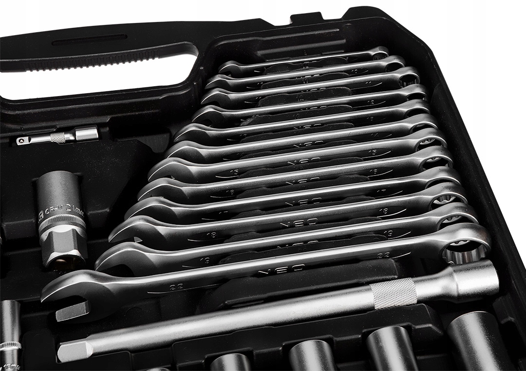 Dzięki przemyślanemu doborowi elementów zestaw NEO sprawdzi się zarówno w profesjonalnych serwisach, jak i w domowych warsztatach. Jego wszechstronność pozwala na wygodne wykonywanie napraw i prac montażowych.