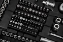 Zestaw wykonano z wysokiej jakości stali chromowo-wanadowej (CrV), co zapewnia długowieczność i odporność na uszkodzenia. 72-zębowe grzechotki umożliwiają precyzyjne manewrowanie, a szeroki wybór końcówek sprawia, że narzędzia pasują do różnych śrub i nakrętek.