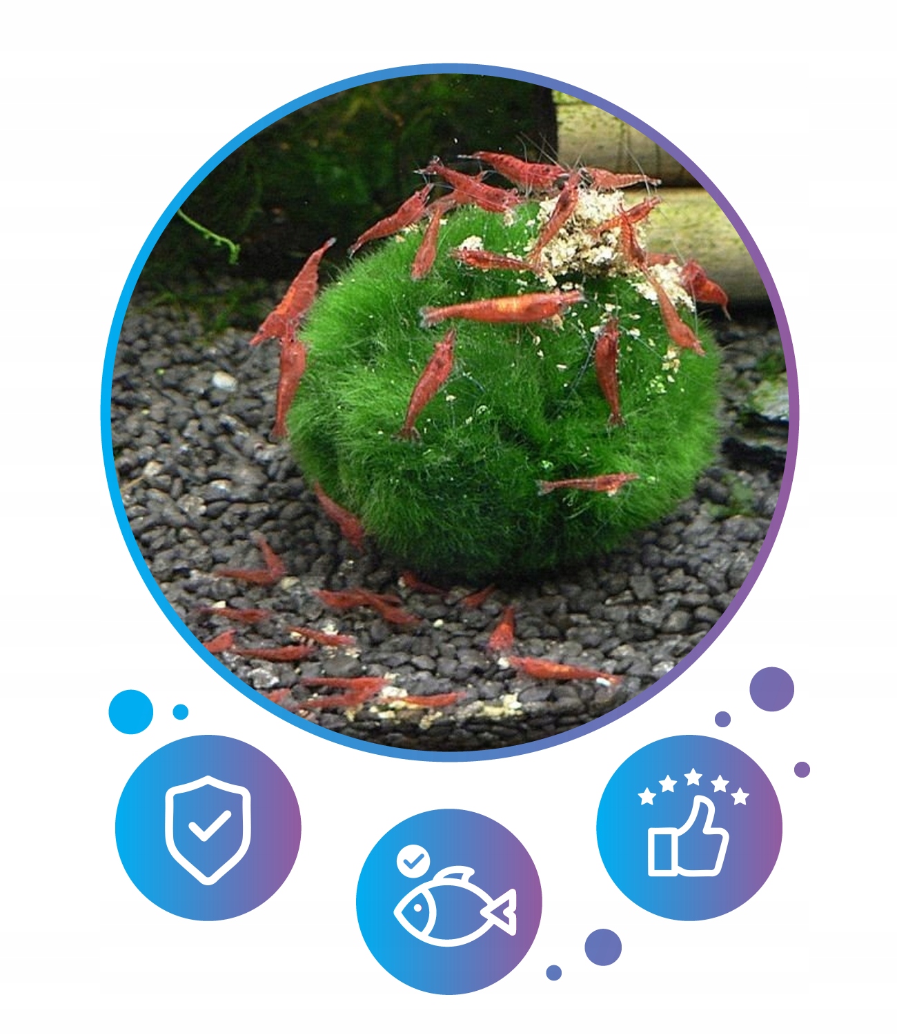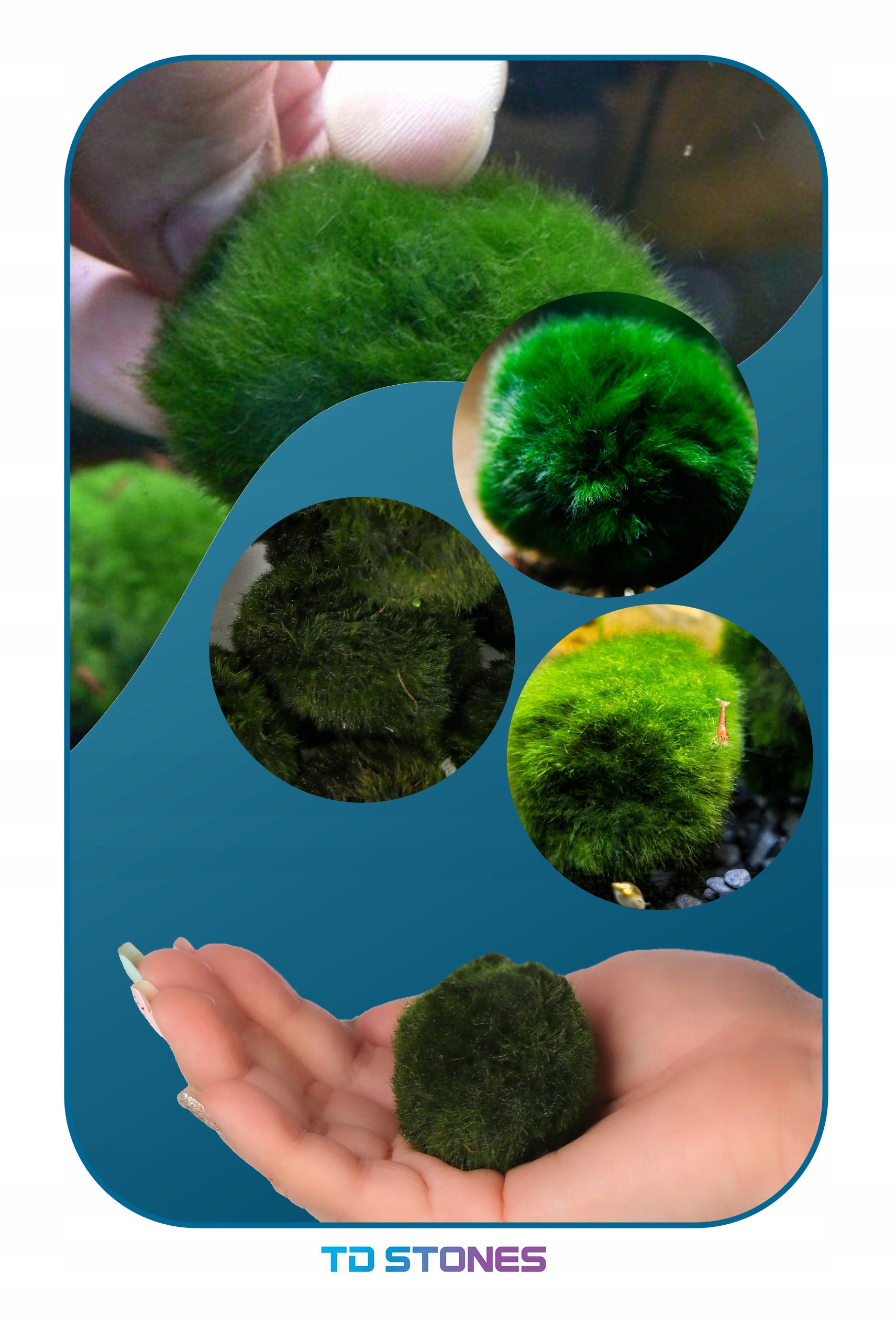 ➡️ Wyjątkowy kulisty mech wodny zwany gałęzatką. Popularny również pod nazwą Marimo lub cladophora aegagropila. Jest to wyjątkowo odporna roślina wodna.