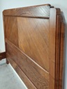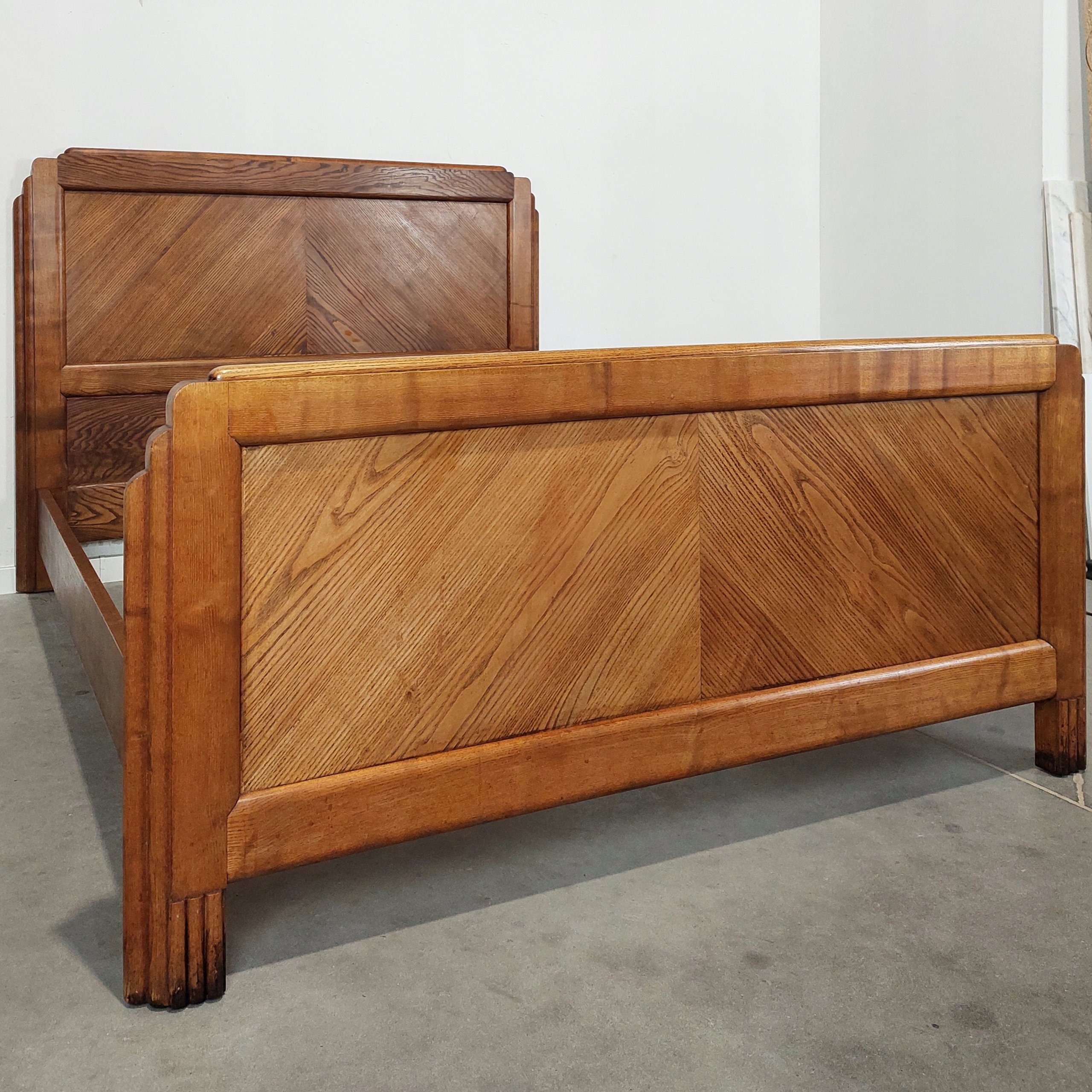 Stylowe potężne dębowe łóżko art deco przywiezione z Francji. Unikatowy model, rzadko spotykany. Solidna konstrukcja, wykonane w całości z litej dębiny (bardzo ciężkie). Występują ślady użytkowe takie jak ryski przebarwienia. Szacunkowy czas powstania - przełom 1940/1950 r. Szczegóły są opisane i pokazane na zdjęciach.