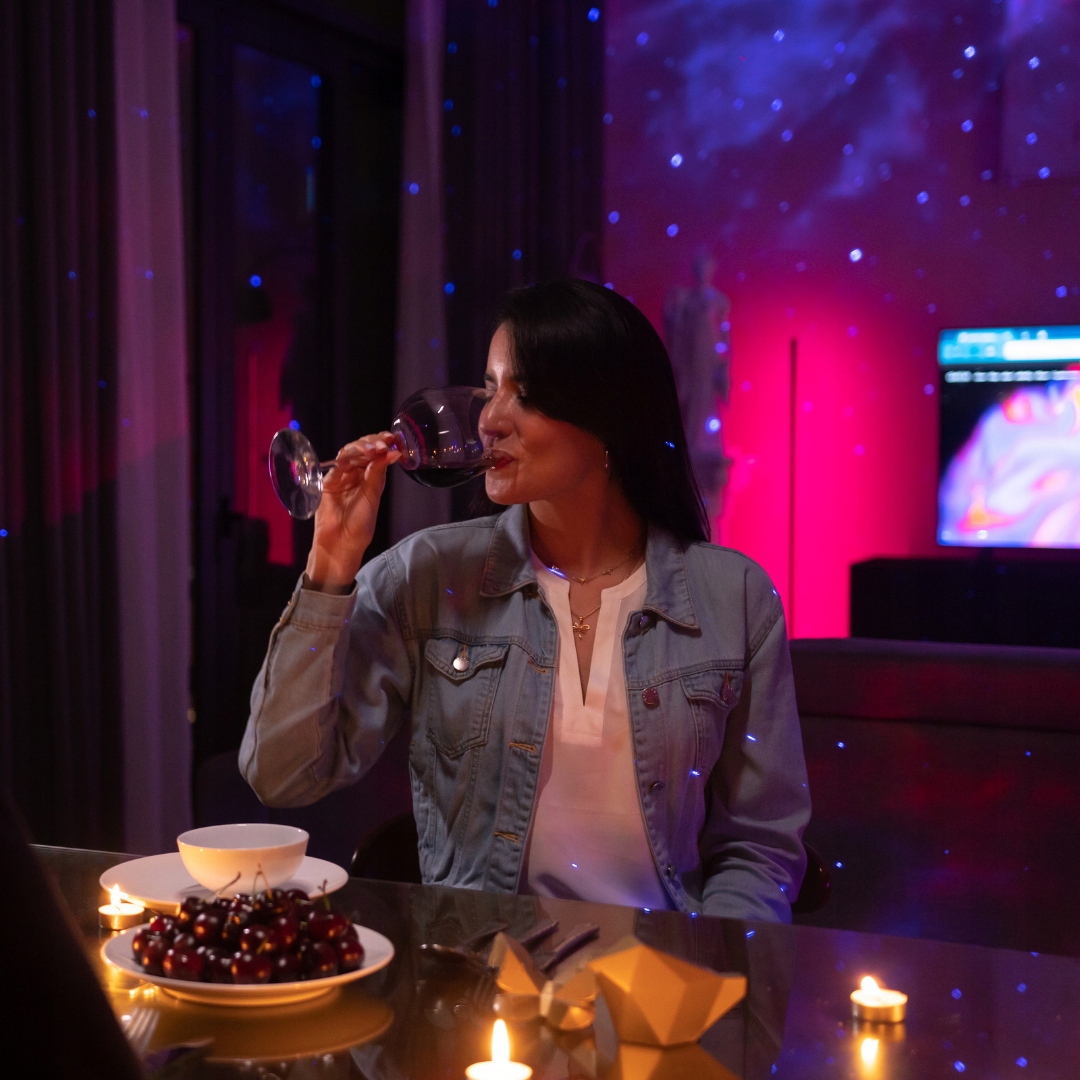 ✅ Nieograniczona paleta kolorów: Wybierz dowolny kolor z nieograniczonej palety barw, aby dostosować projekcję do nastroju i stworzyć unikalną atmosferę w pomieszczeniu.