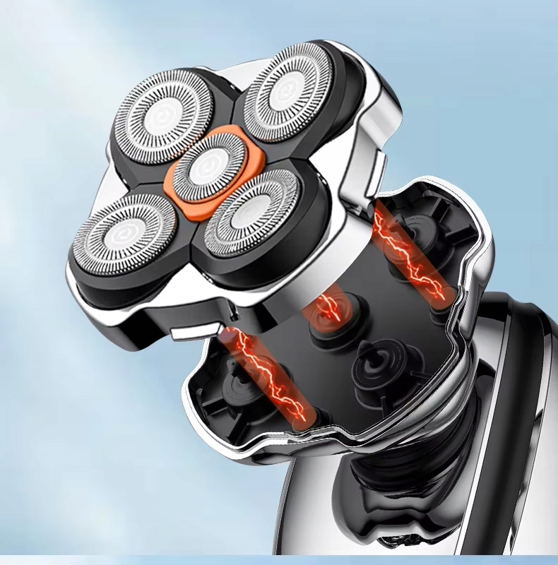 Golarkę elektryczną można opłukać bezpośrednio pod bieżącą wodą, jest łatwa w czyszczeniu i konserwacji. Ergonomicznie zaprojektowana, pięciogłowicowa golarka zapewnia pełną kontrolę, a uchwyt jest wygodny w trzymaniu.