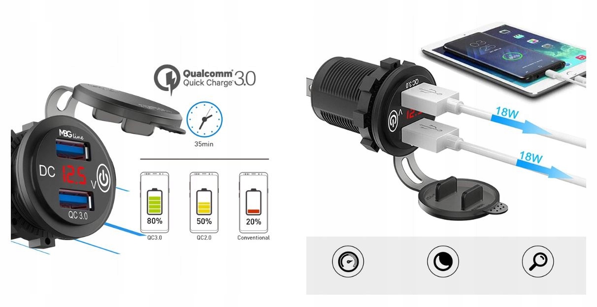 Urządzenie posiada wbudowany woltomierz podświetlony w kolorze czerwony. Pokazuje on informację o aktualnym napięciu na podawanym zasilaniu.