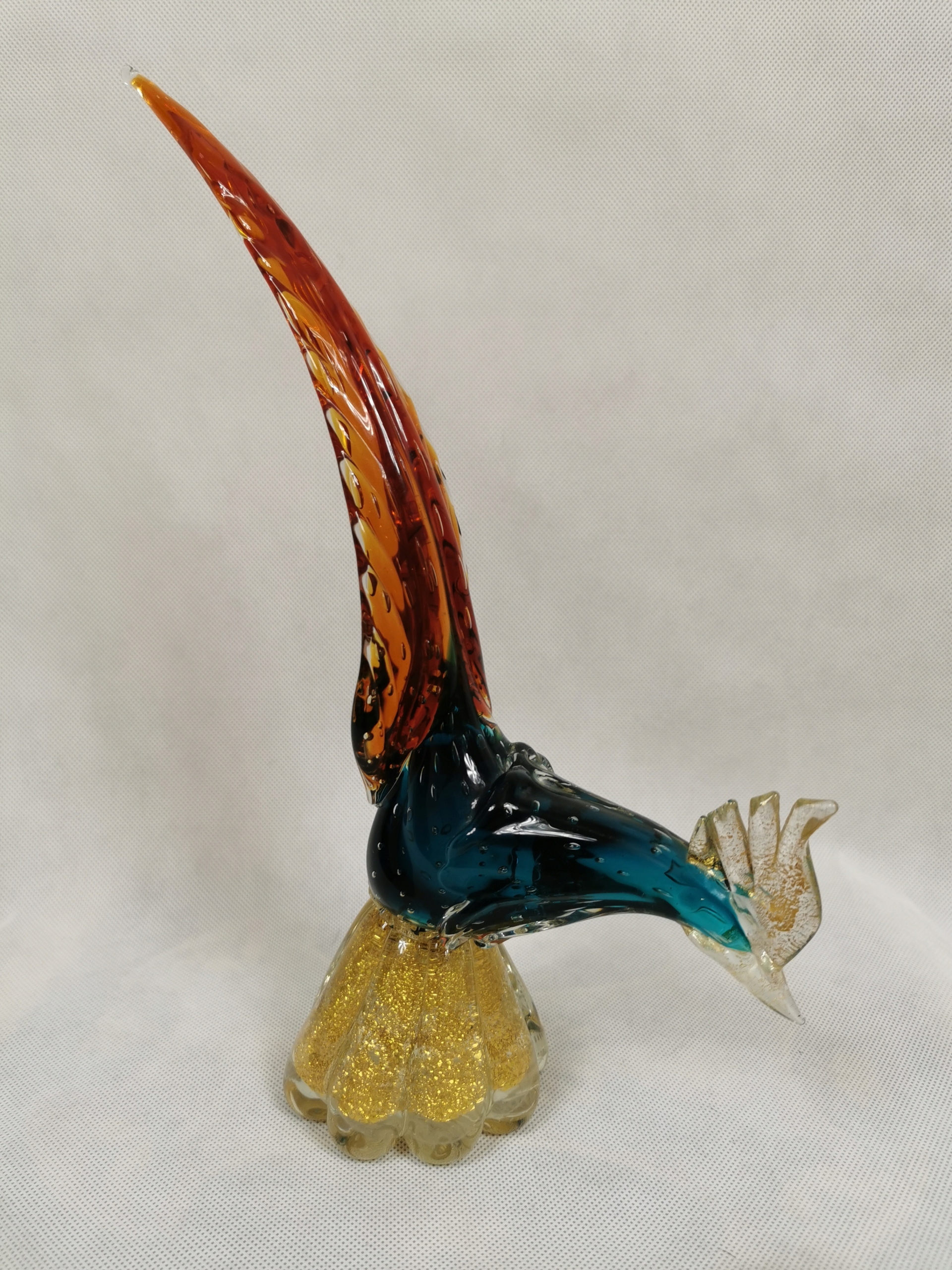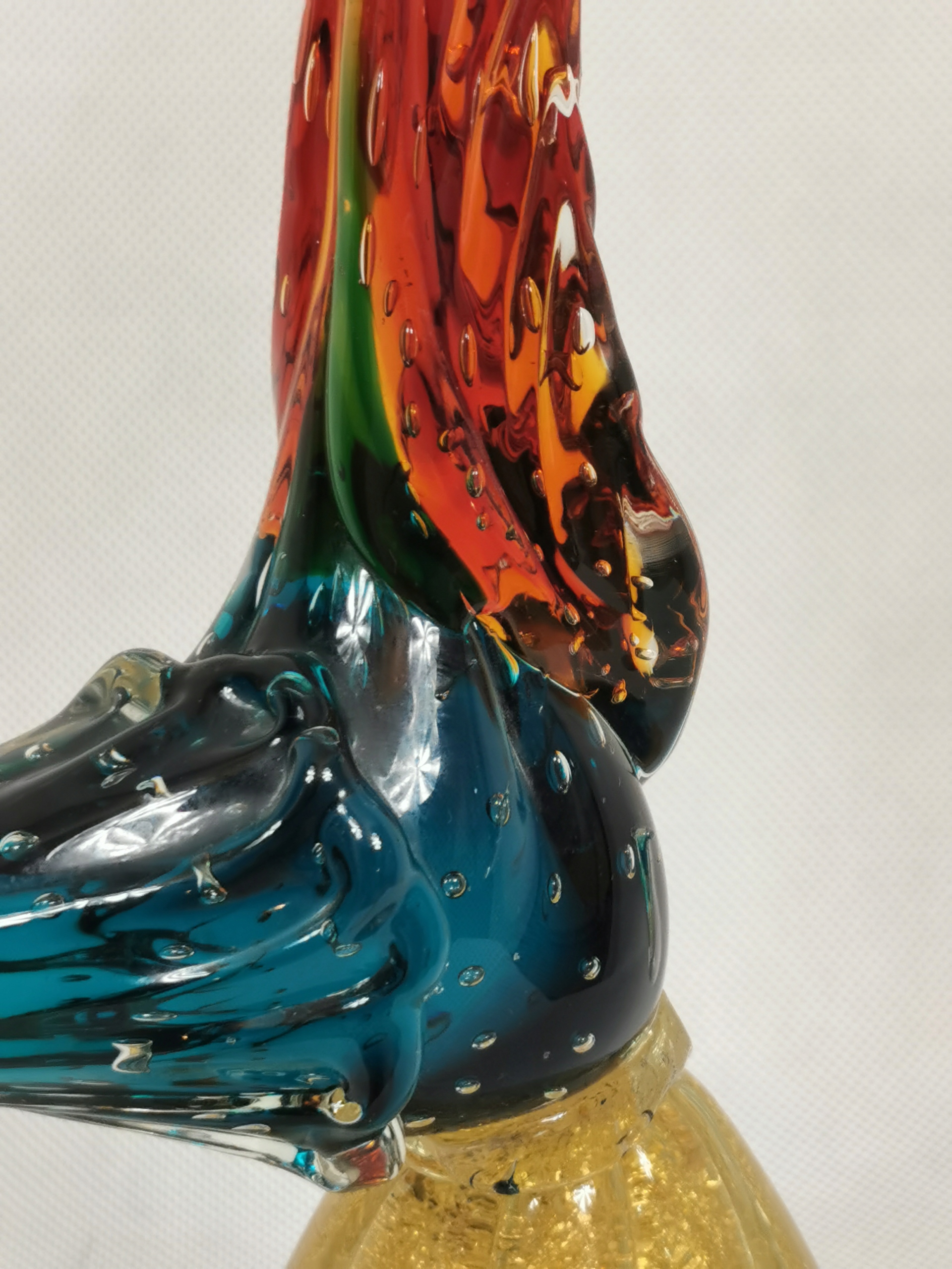 Oferuję piękną, kolekcjonerską, ręcznie wykonaną figurkę Rajskiego Ptaka. Powstała z najwyższej jakości kolorowego szkła artystycznego w jednej z hut na wyspie Murano. Wykonana w latach 1955 - 1960. Przepięknie wybarwiona. Wykonana bardzo starannie i szczegółowo. Ze względu na wzór, kolorystykę i duże rozmiary figurka prezentuje się bardzo efektownie.