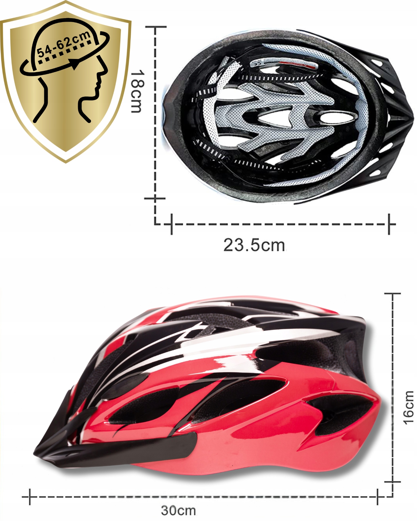 Dzięki regulacji wielkości z tyłu głowy, obwód kasku kask można dostosować do indywidualnych preferencji. Kask pasuje na obwód głowy 54-62 cm.