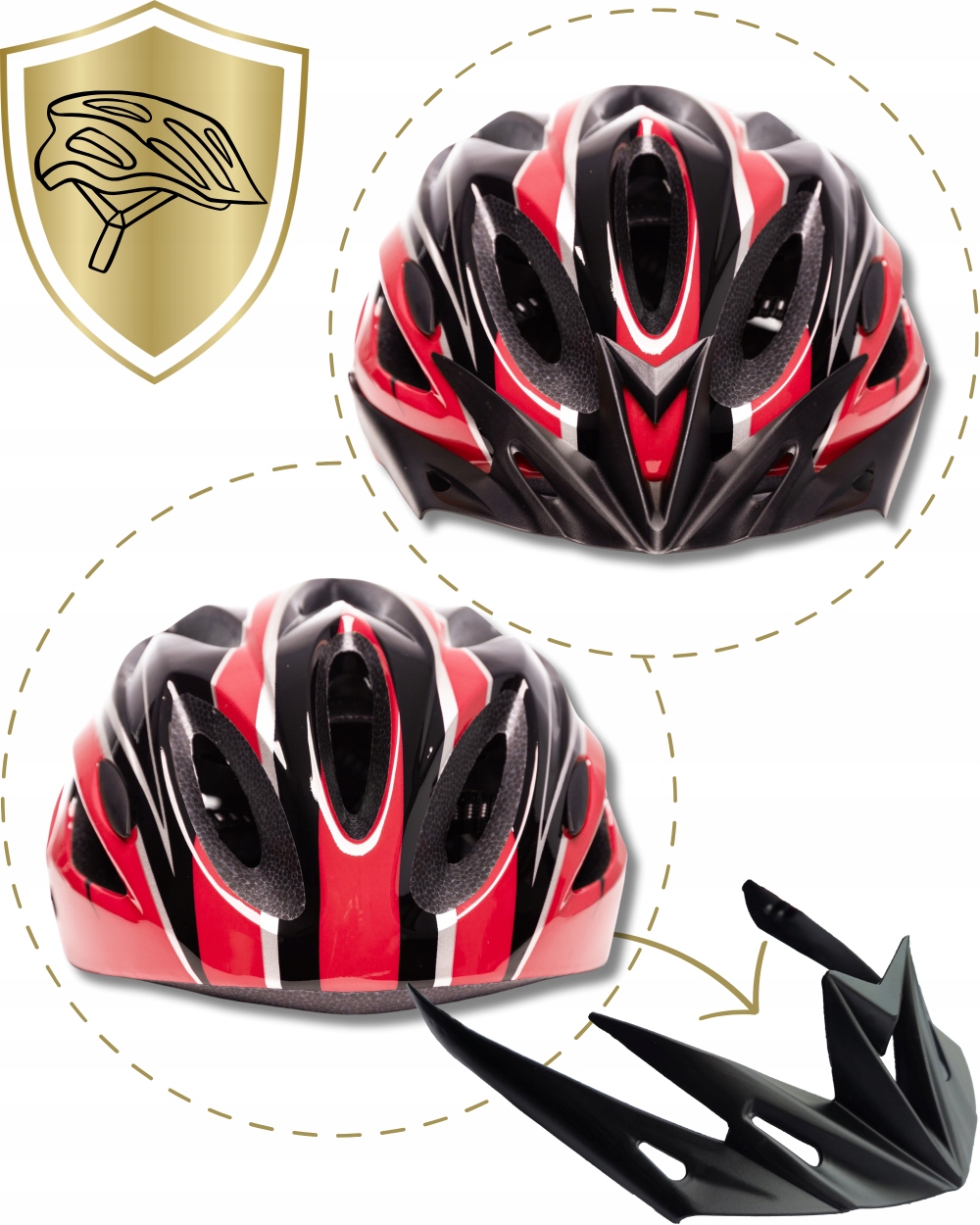 Model ten wyposażony jest w daszek, który można w każdej chwili wpiąć lub wypiąć w zależności od warunków pogodowych bądź indywidualnych preferencji. Osłona skutecznie chroni oczy przed słońcem, deszczem czy błotem, jednocześnie nie ograniczając pola widzenia.